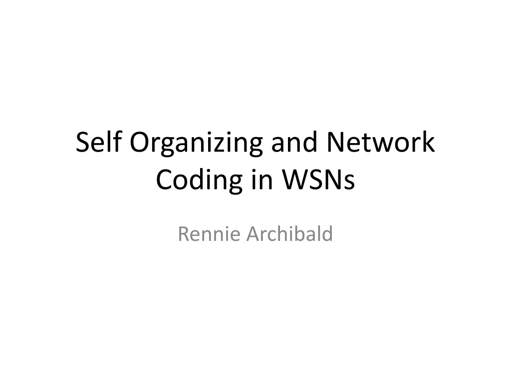 Self Organizing and Network Coding in WSNs Rennie Archibald