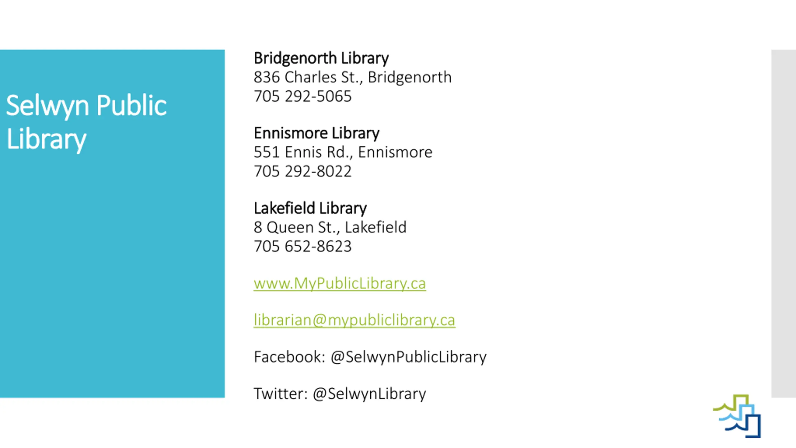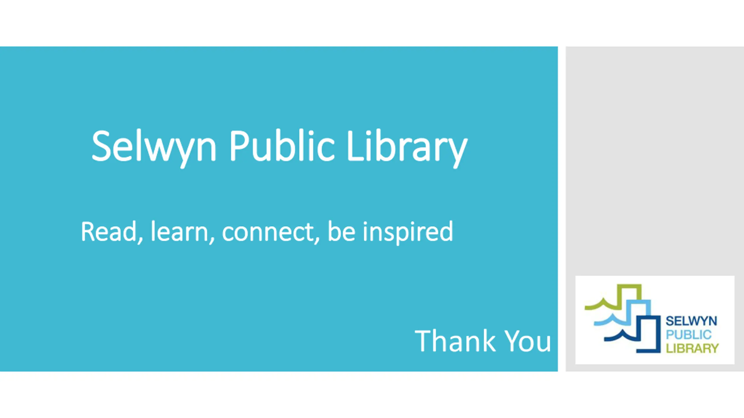 Selwyn Public Library Selwyn Public Library Read Read, learn, connect, be inspired , learn, connect, be inspired Thank You