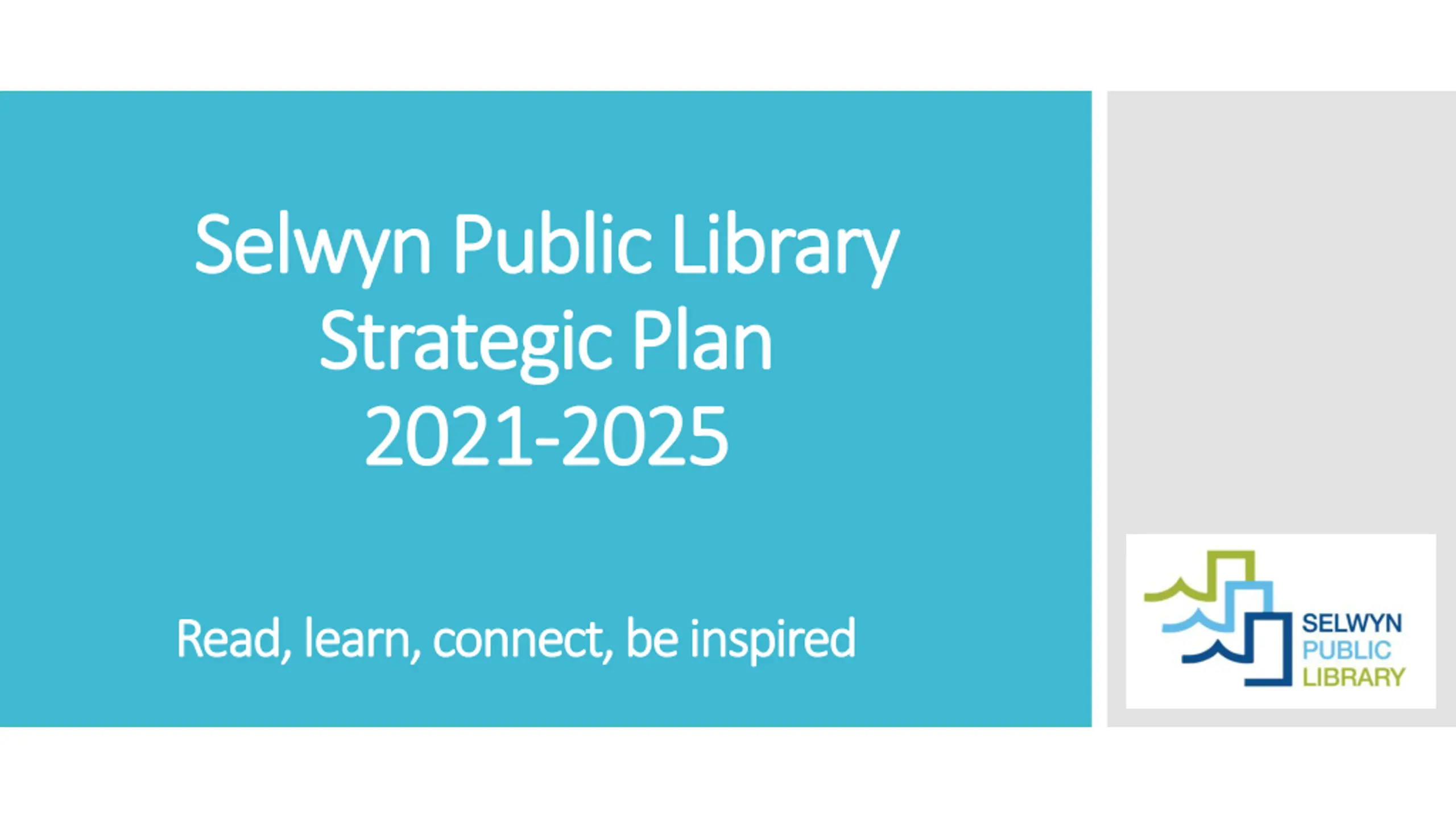 Selwyn Public Library Selwyn Public Library Strategic Plan Strategic Plan 2021 2021- -2025 2025 Read, learn, connect, be inspired Read, learn, connect, be inspired
