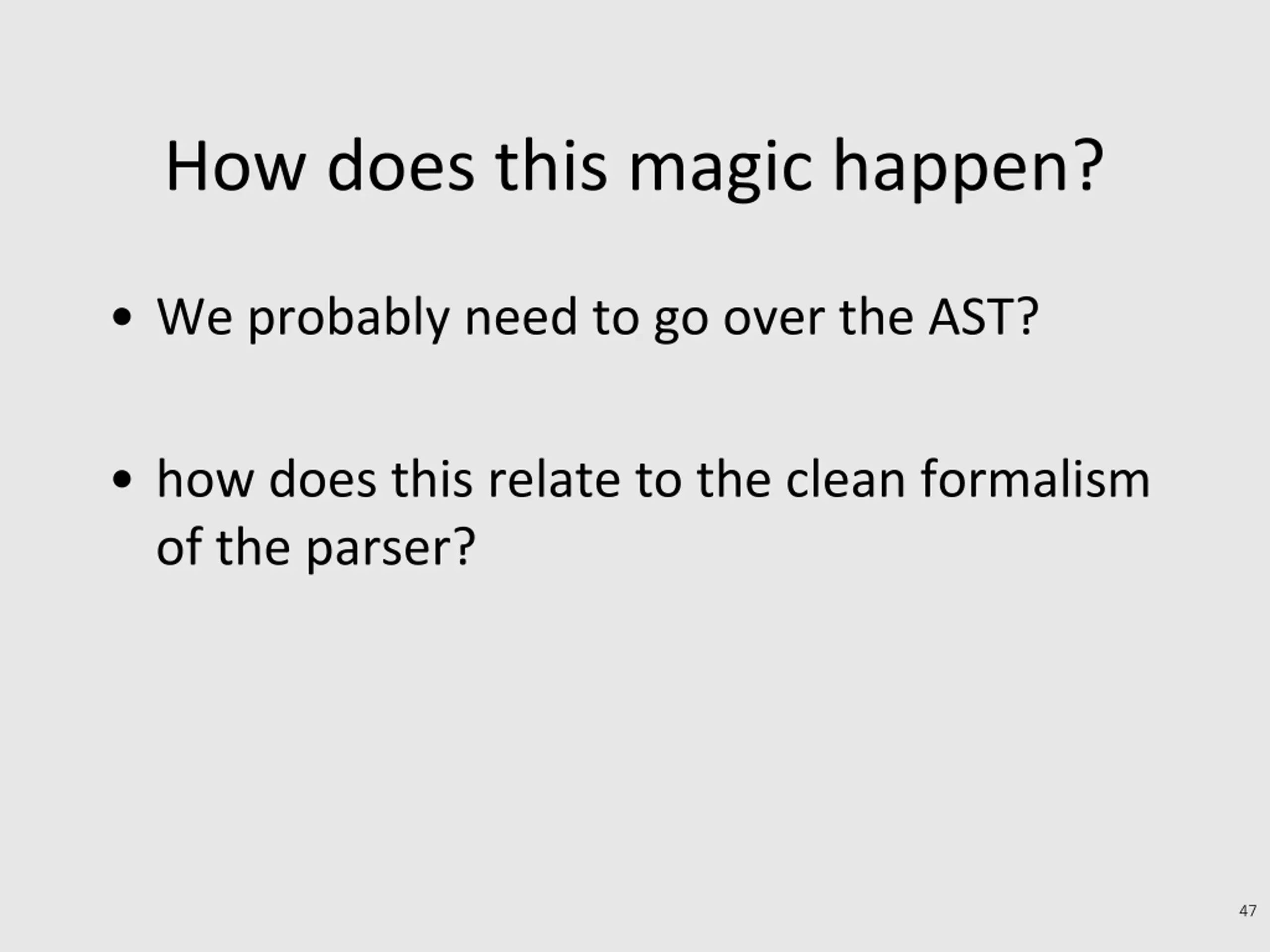 How does this magic happen? We probably need to go over the AST? how does this relate to the clean formalism of the parser? 47