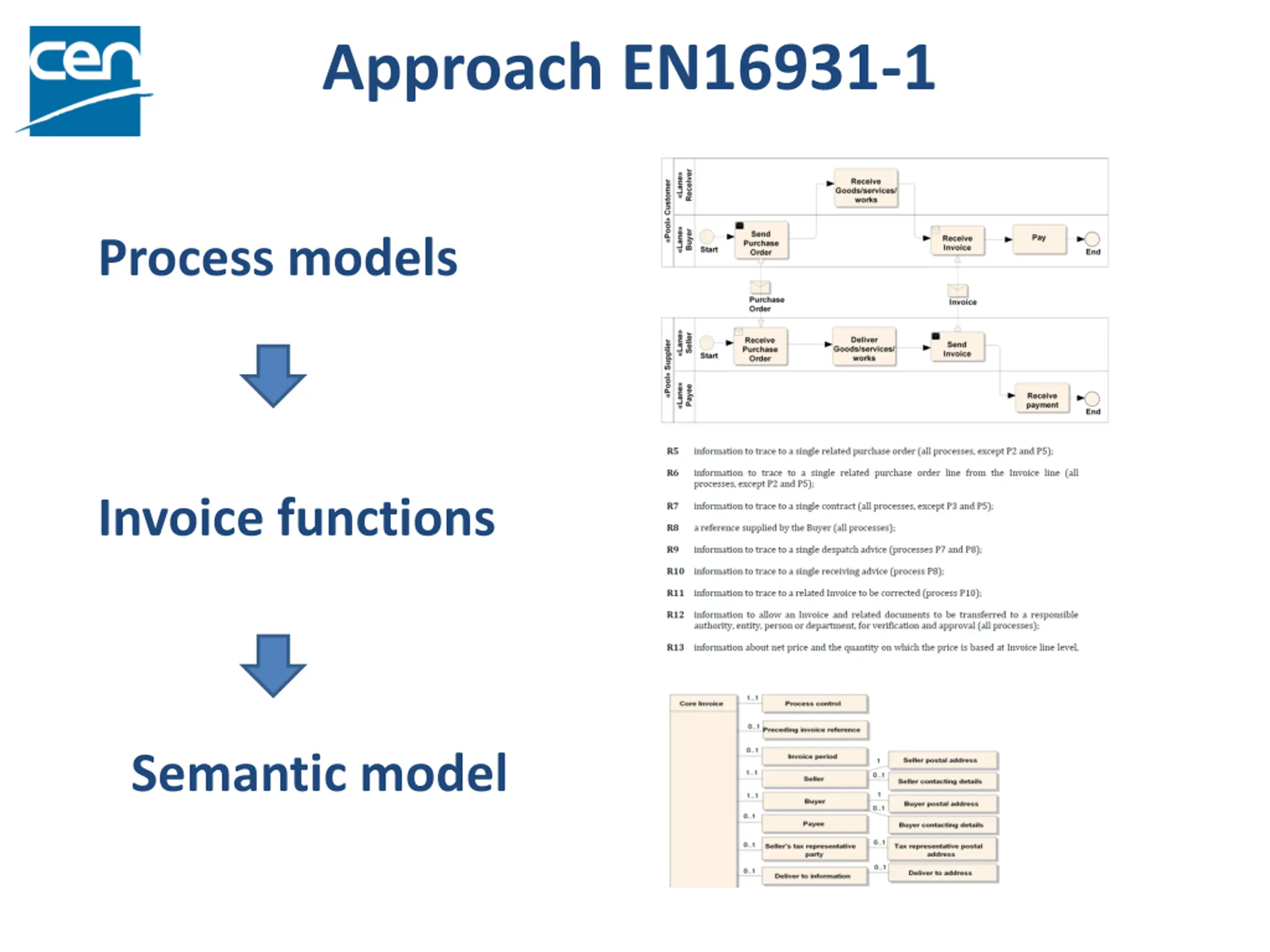 Approach EN16931-1 Process models Invoice functions Semantic model