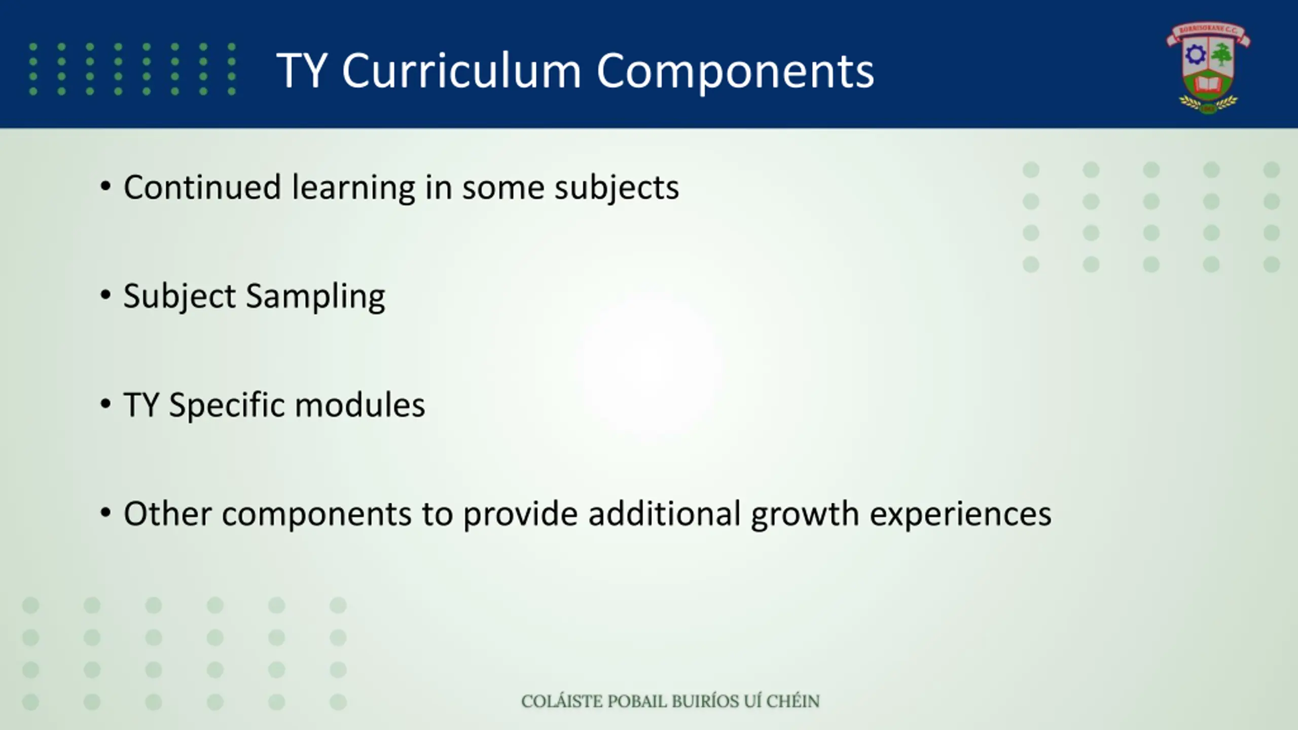 TY Curriculum Components Continued learning in some subjects Subject Sampling TY Specific modules Other components to provide additional growth experiences