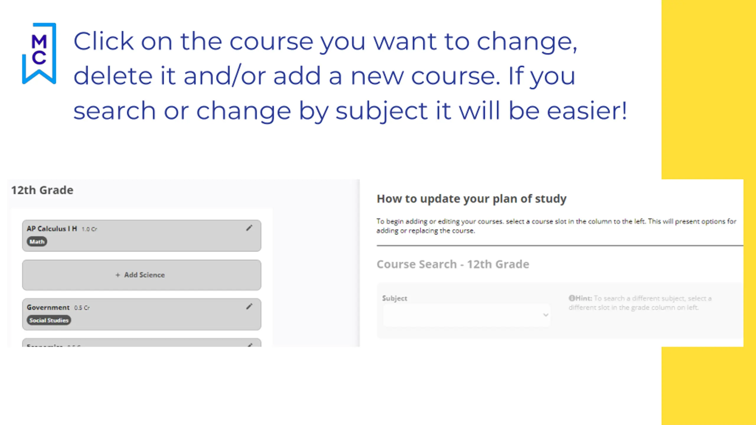 Click on the course you want to change, delete it and/or add a new course. If you search or change by subject it will be easier!