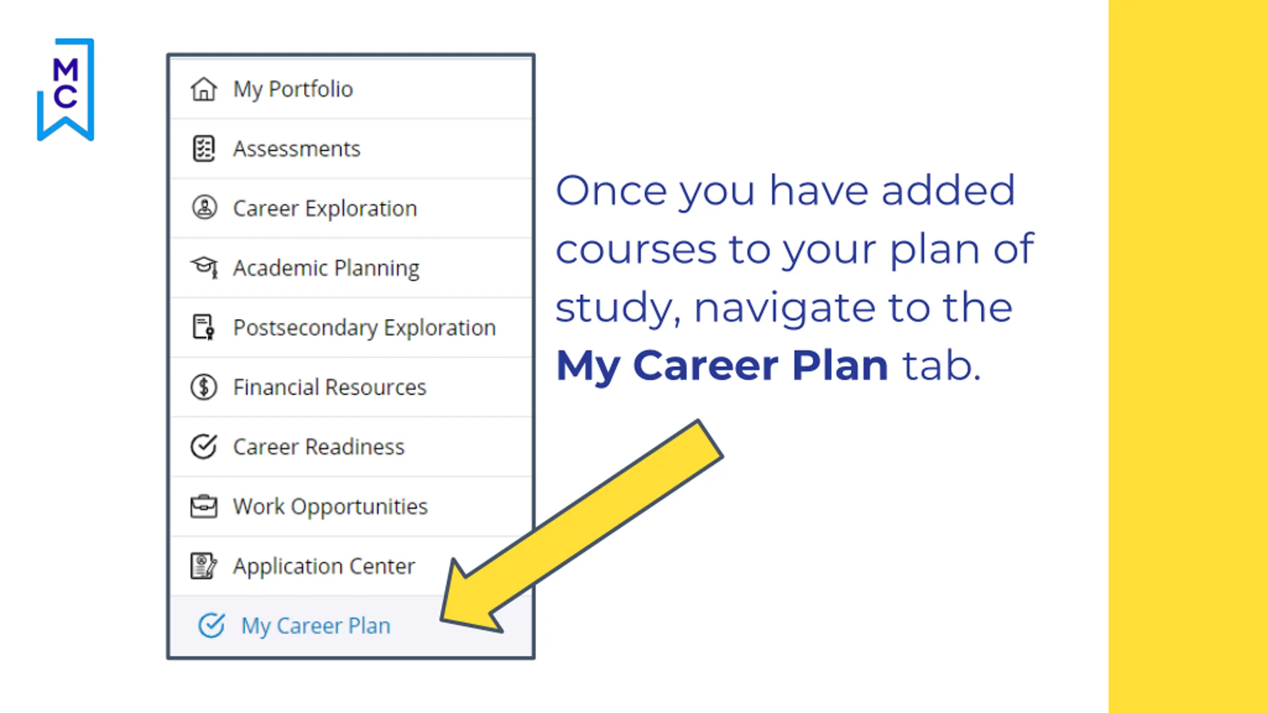 Once you have added courses to your plan of study, navigate to the My Career Plan tab.