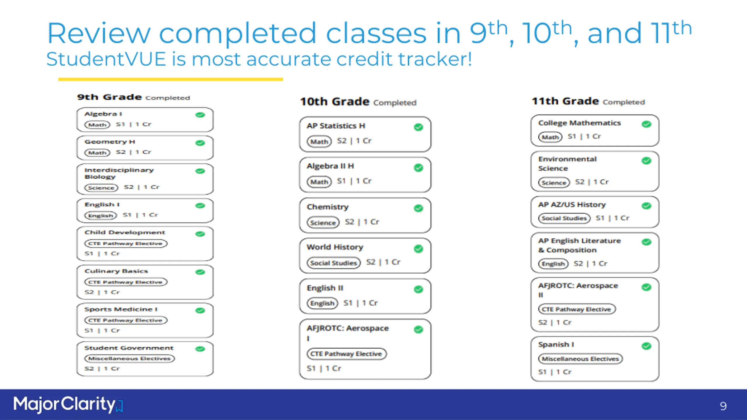 Review completed classes in 9th, 10th, and 11th StudentVUE is most accurate credit tracker! 9