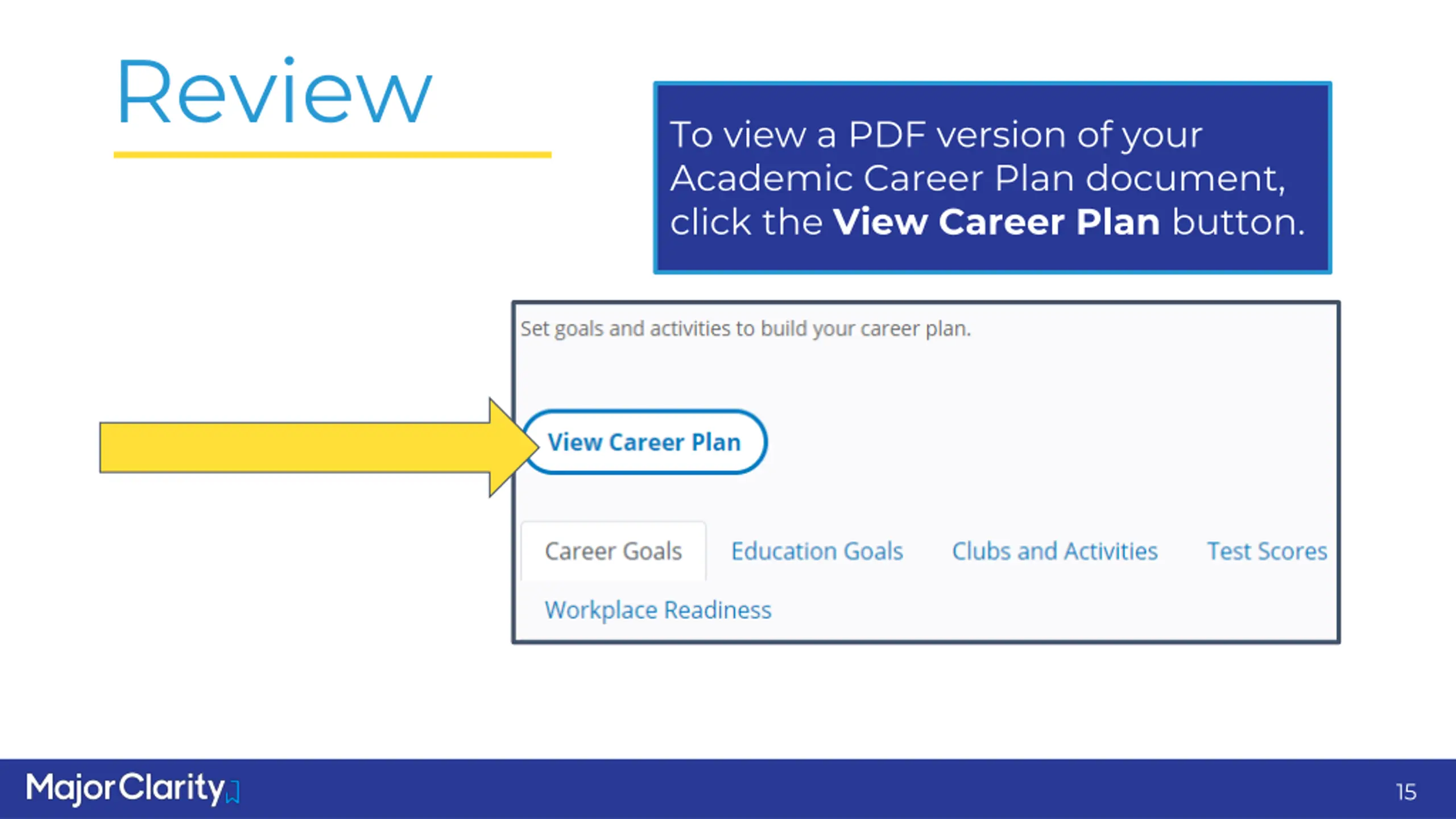 Review To view a PDF version of your Academic Career Plan document, click the View Career Plan button. 15