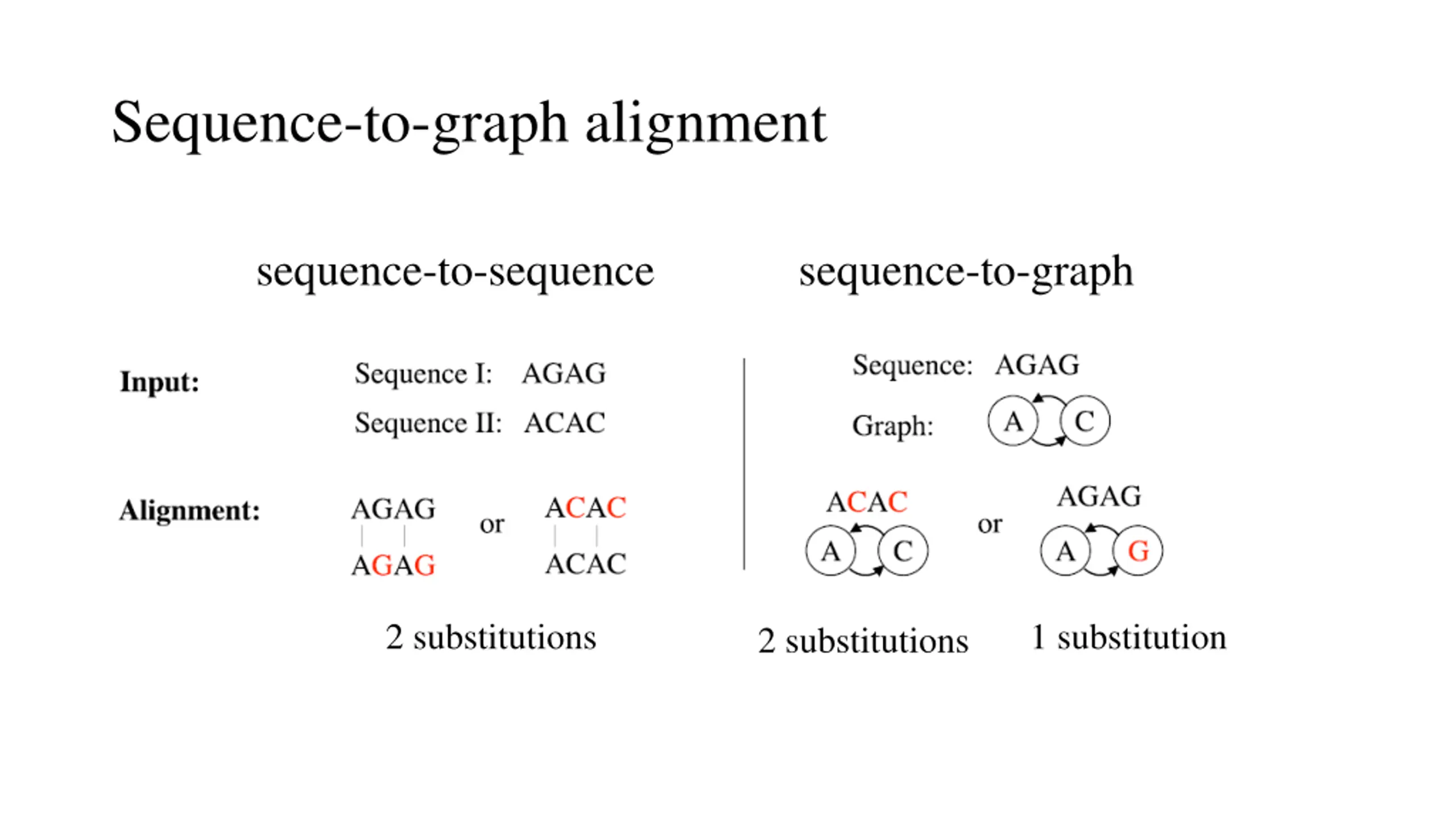 Sequence-to-graph alignment sequence-to-sequence sequence-to-graph 2 substitutions 1 substitution 2 substitutions