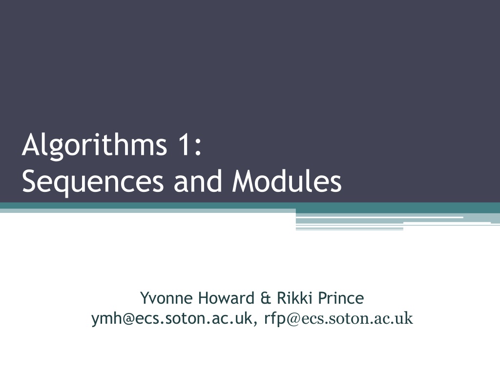 Algorithms 1: Sequences and Modules Yvonne Howard & Rikki Prince ymh@ecs.soton.ac.uk, rfp@ecs.soton.ac.uk