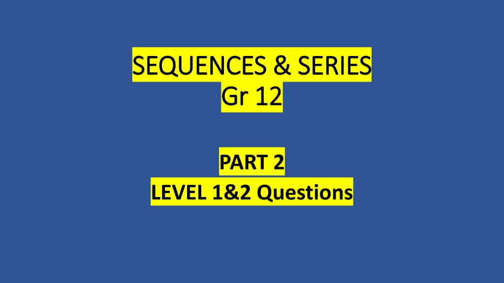 SEQUENCES & SERIES SEQUENCES & SERIES Gr 12 Gr 12 PART 2 LEVEL 1&2 Questions