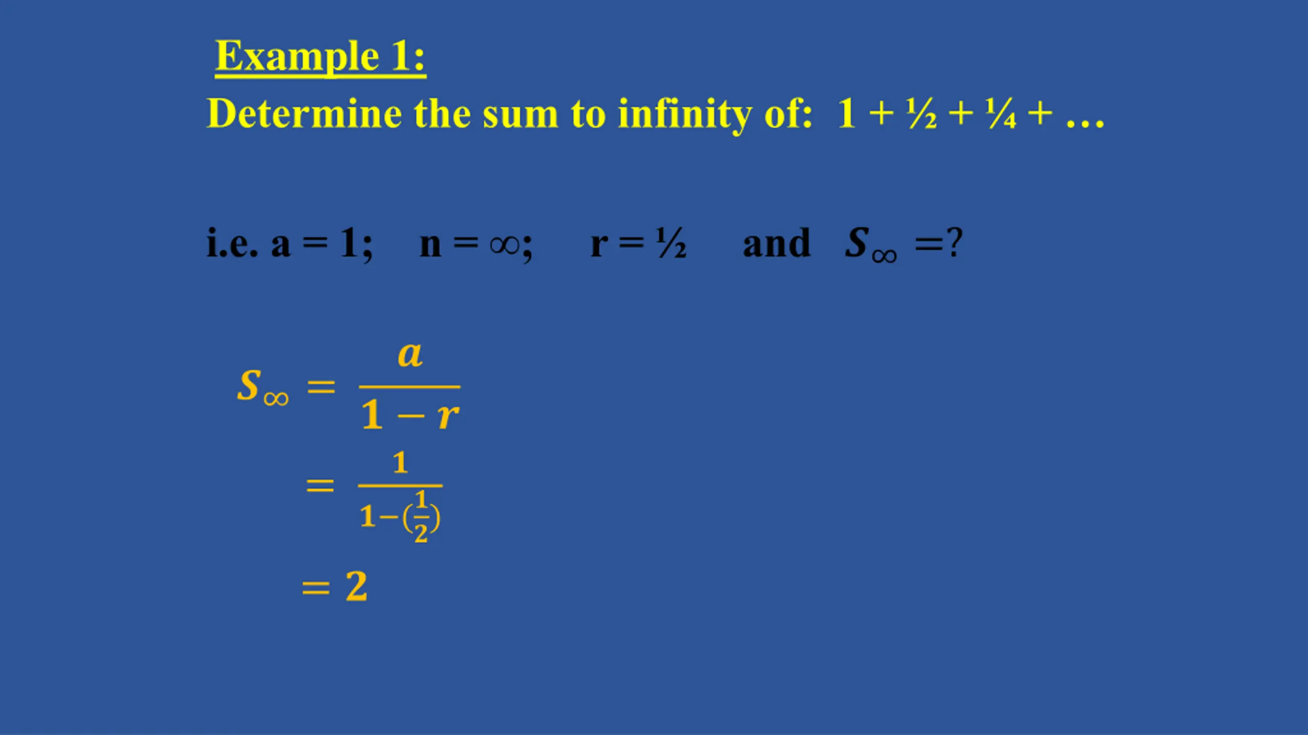 Example 1: Determine the sum to infinity of: 1 + + + i.e. a = 1; n = ; r = and ? =? ? ? = ? ? ? ? (? = ?) = ?