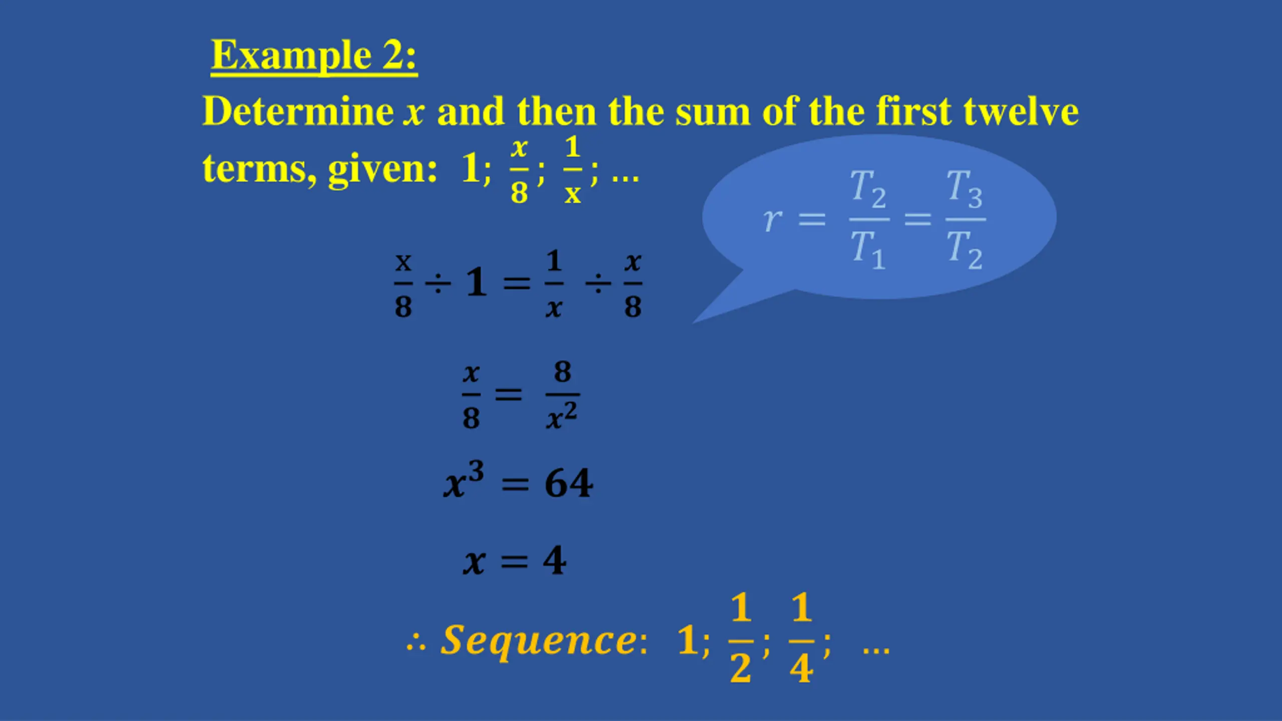 Example 2: Determine x and then the sum of the first twelve terms, given: 1; ?; ? ? ?; ?2 ?1 =?3 ? = ?2 x ? ? =? ? ? ? ? ?= ? ?? ??= ?? ? = ? ????????: ?;? ?;? ?;