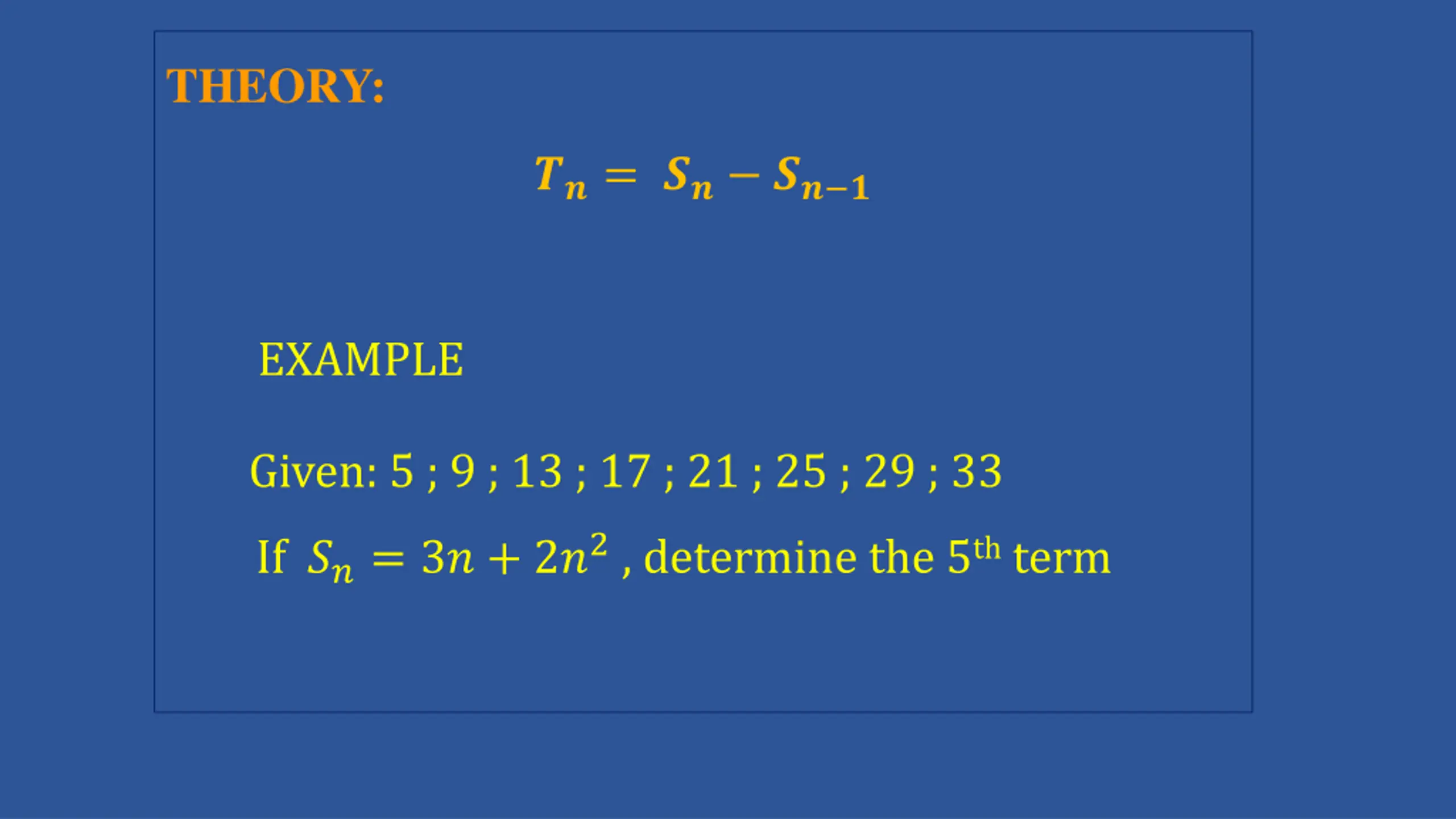 THEORY: ??= ?? ?? ? EXAMPLE Given: 5 ; 9 ; 13 ; 17 ; 21 ; 25 ; 29 ; 33 If ??= 3? + 2?2 , determine the 5th term