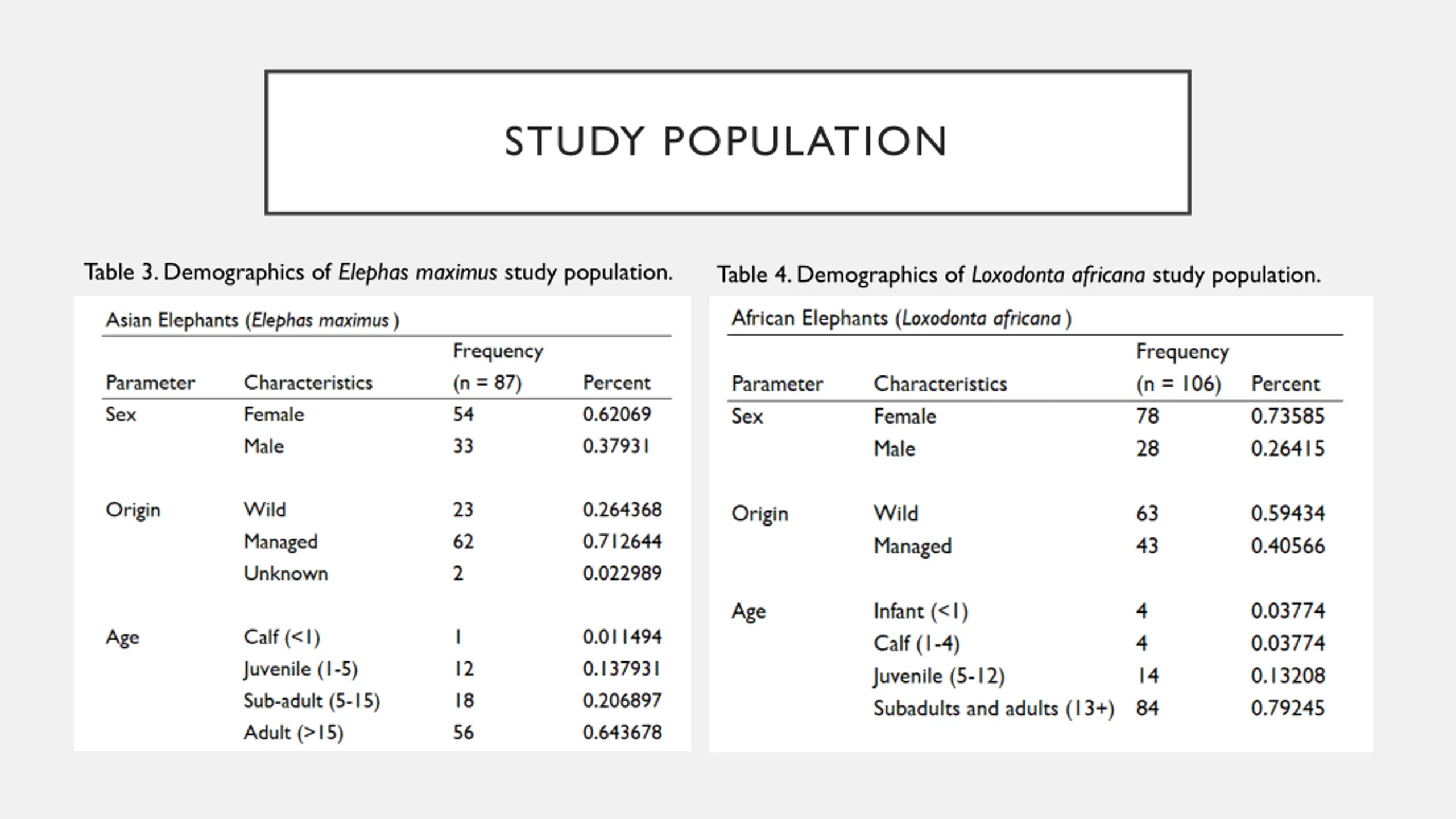 STUDY POPULATION Table 3. Demographics of Elephas maximus study population. Table 4. Demographics of Loxodonta africana study population.