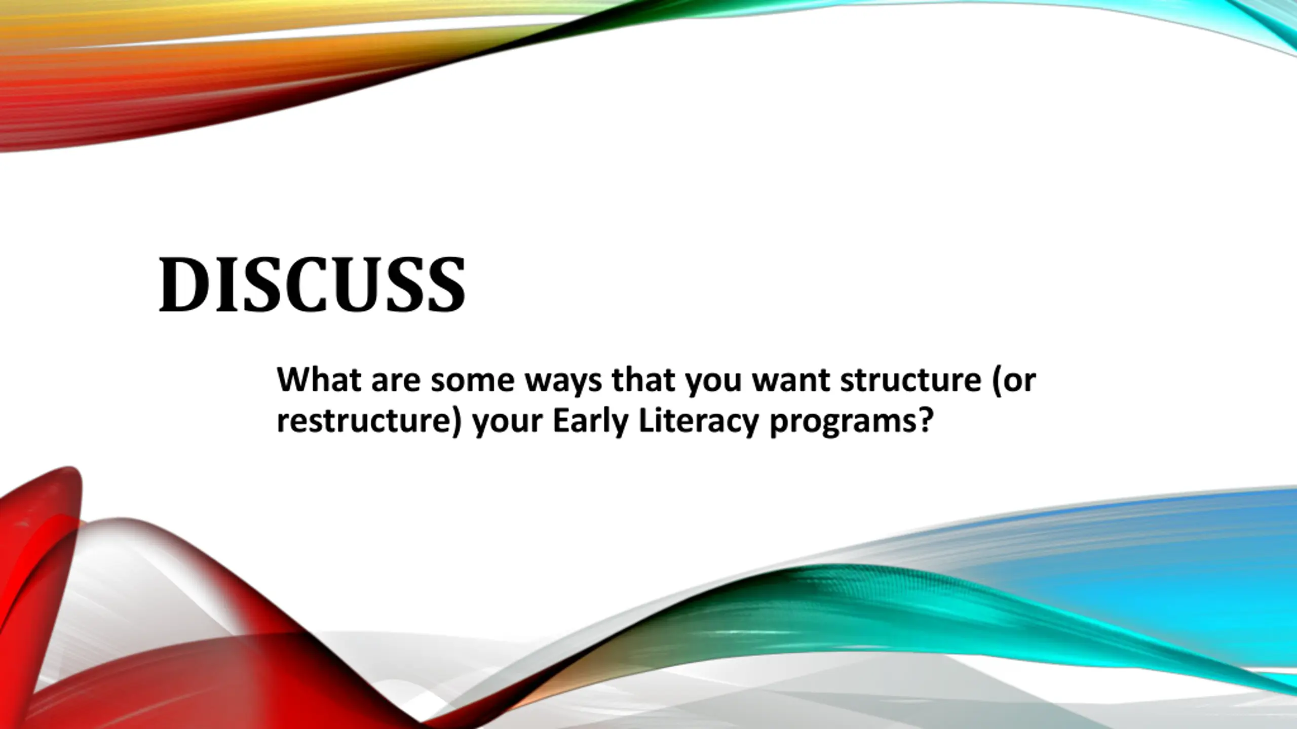 DISCUSS What are some ways that you want structure (or restructure) your Early Literacy programs?