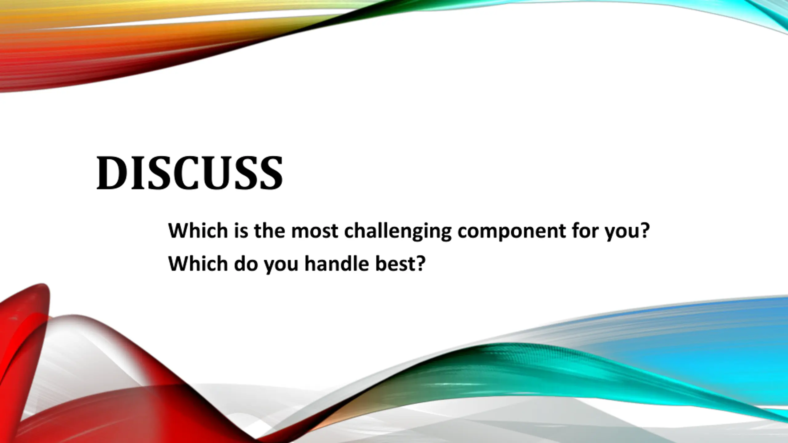 DISCUSS Which is the most challenging component for you? Which do you handle best?