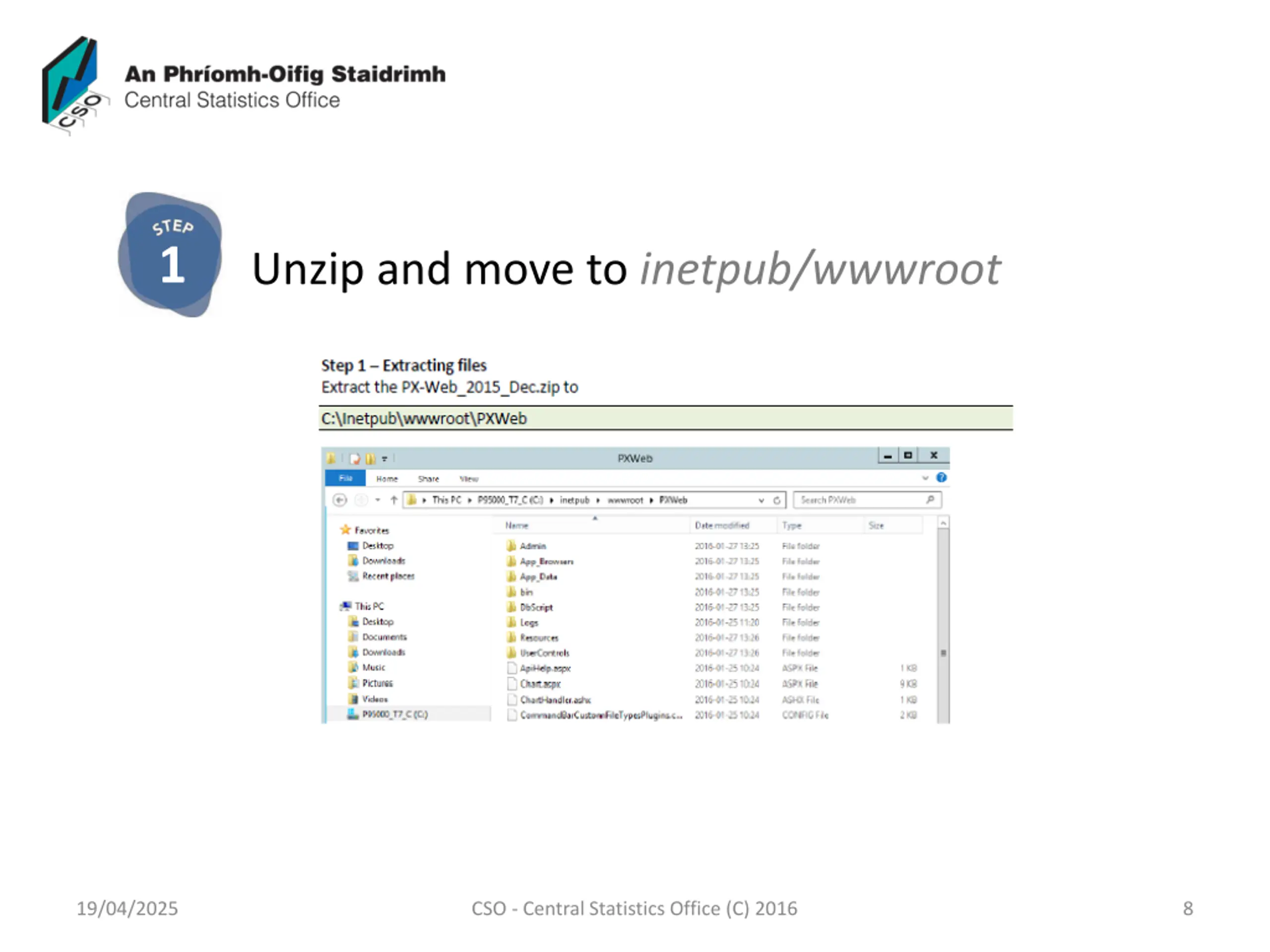 1 Unzip and move to inetpub/wwwroot 19/04/2025 CSO - Central Statistics Office (C) 2016 8