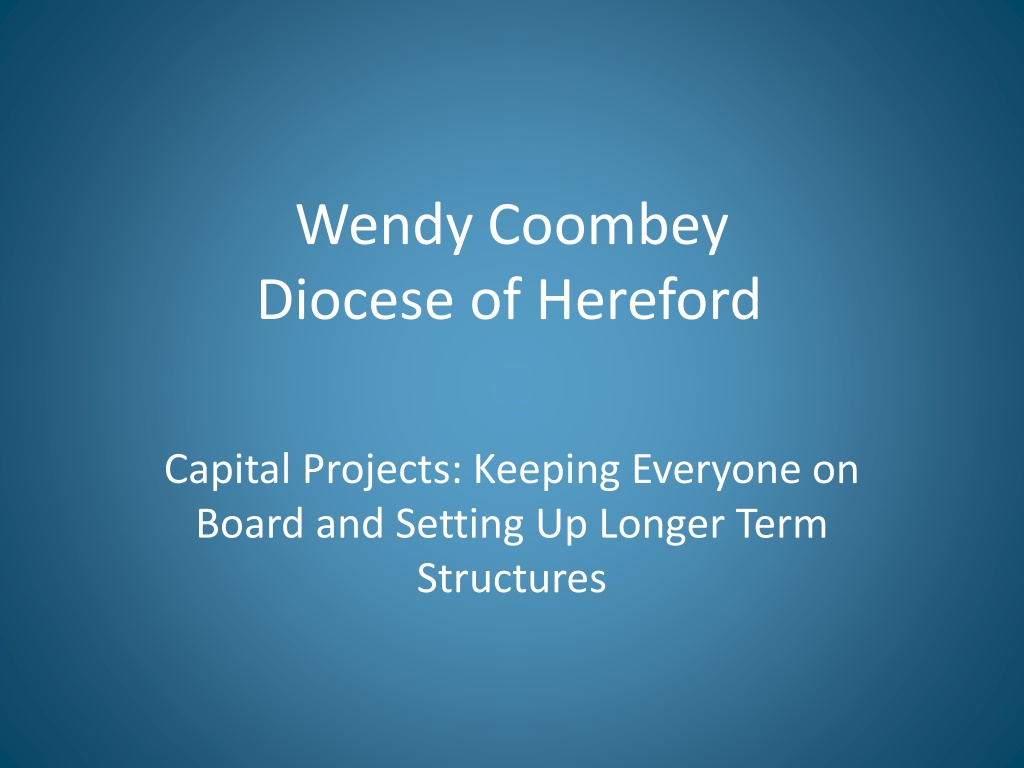 Wendy Coombey Diocese of Hereford Capital Projects: Keeping Everyone on Board and Setting Up Longer Term Structures