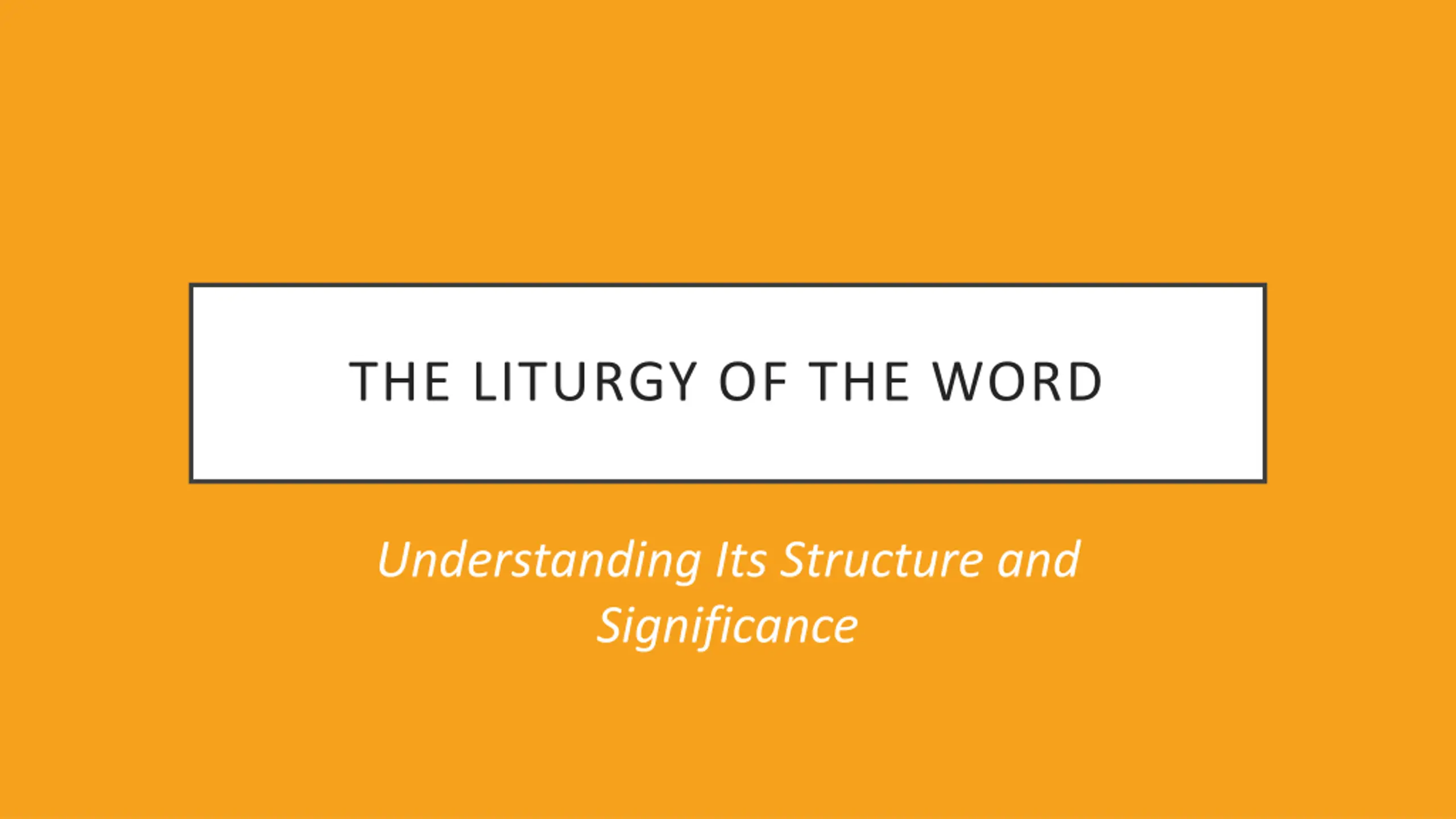 THE LITURGY OF THE WORD Understanding Its Structure and Significance