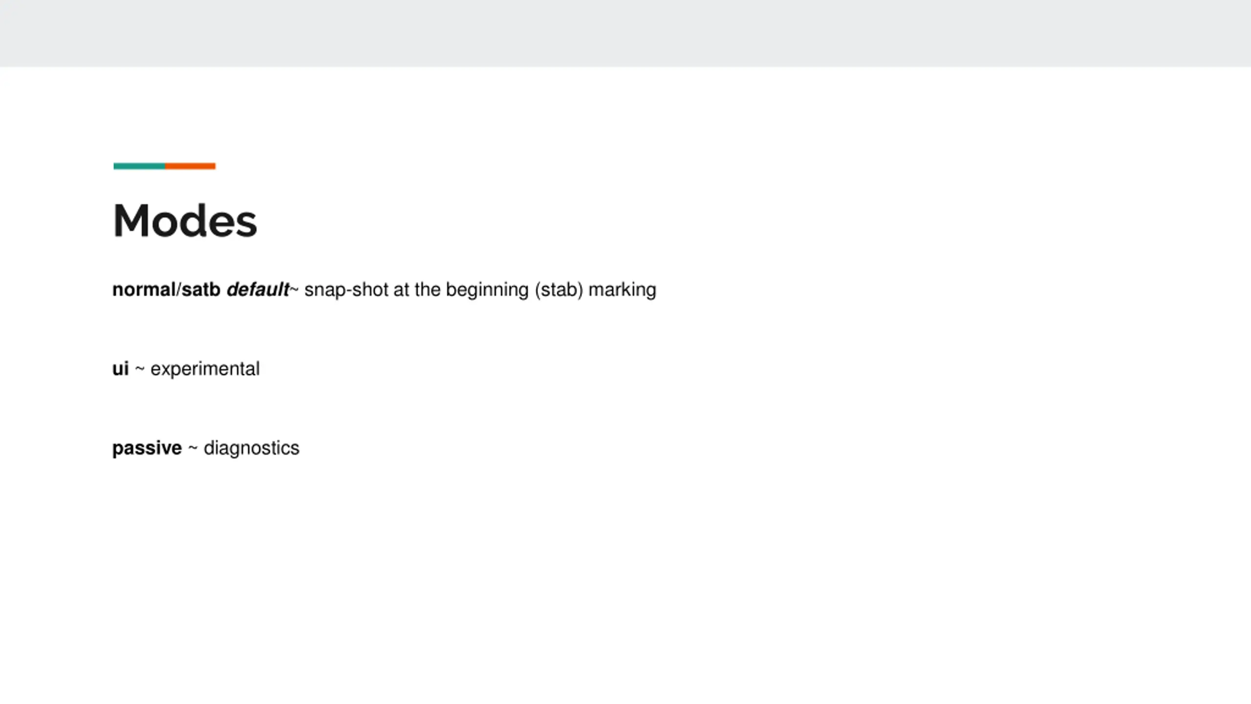 Modes normal/satb default~ snap-shot at the beginning (stab) marking ui ~ experimental passive ~ diagnostics