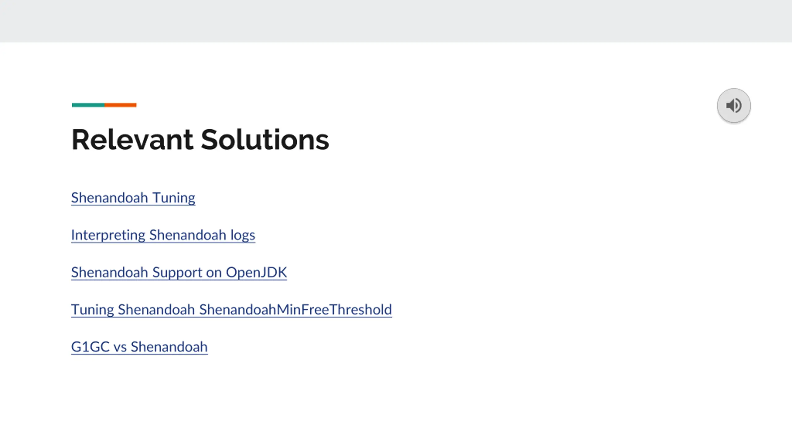 shenandoah20.mp3 Relevant Solutions Shenandoah Tuning Interpreting Shenandoah logs Shenandoah Support on OpenJDK Tuning Shenandoah ShenandoahMinFreeThreshold G1GC vs Shenandoah