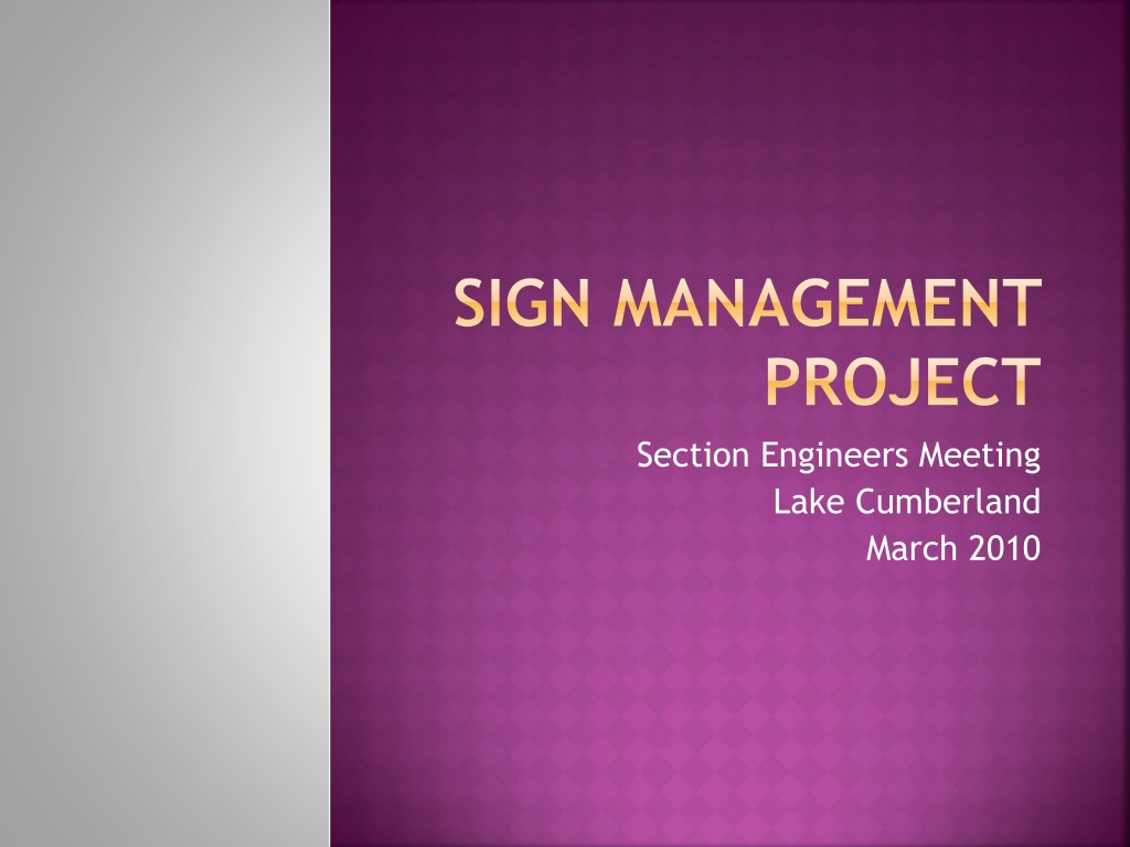 SIGN MANAGEMENT PROJECT Section Engineers Meeting Lake Cumberland March 2010