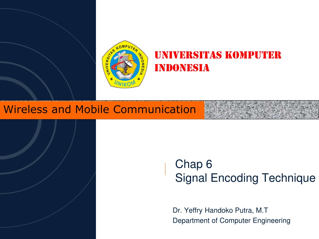 UNIVERSITAS KOMPUTER INDONESIA Wireless and Mobile Communication Chap 6 Signal Encoding Technique Dr. Yeffry Handoko Putra, M.T Department of Computer Engineering