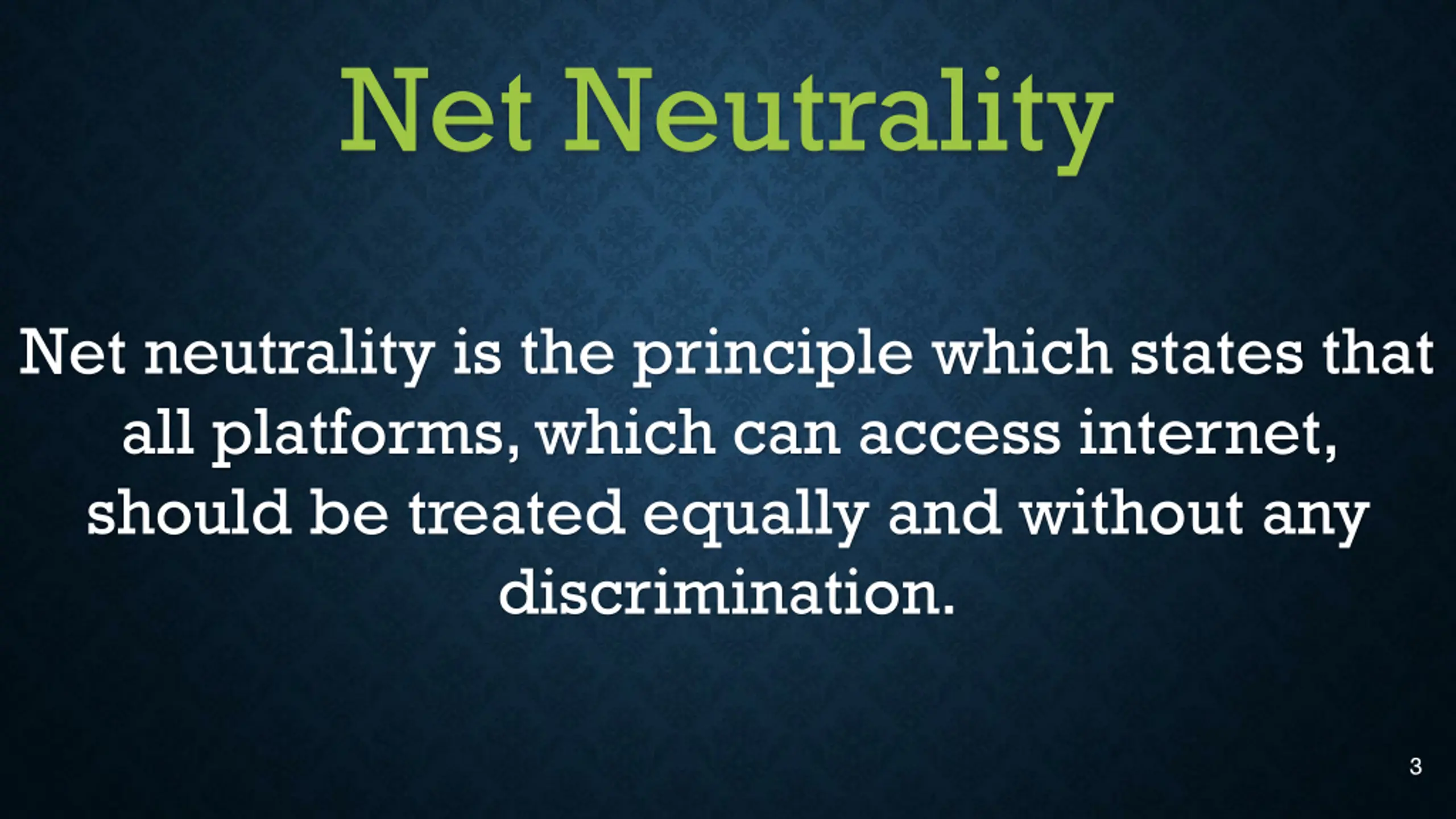 Net Neutrality Net neutrality is the principle which states that all platforms, which can access internet, should be treated equally and without any discrimination. 3