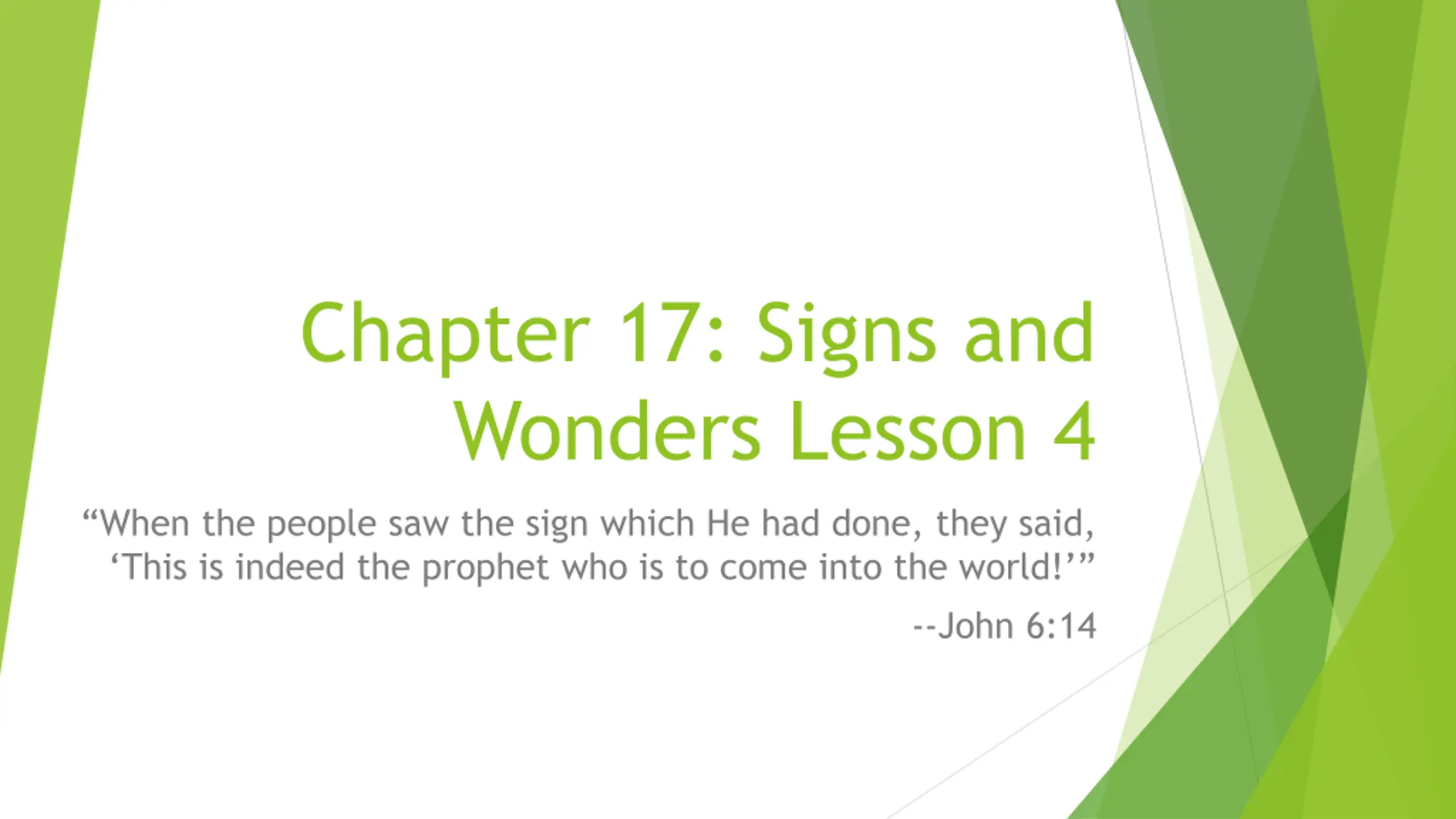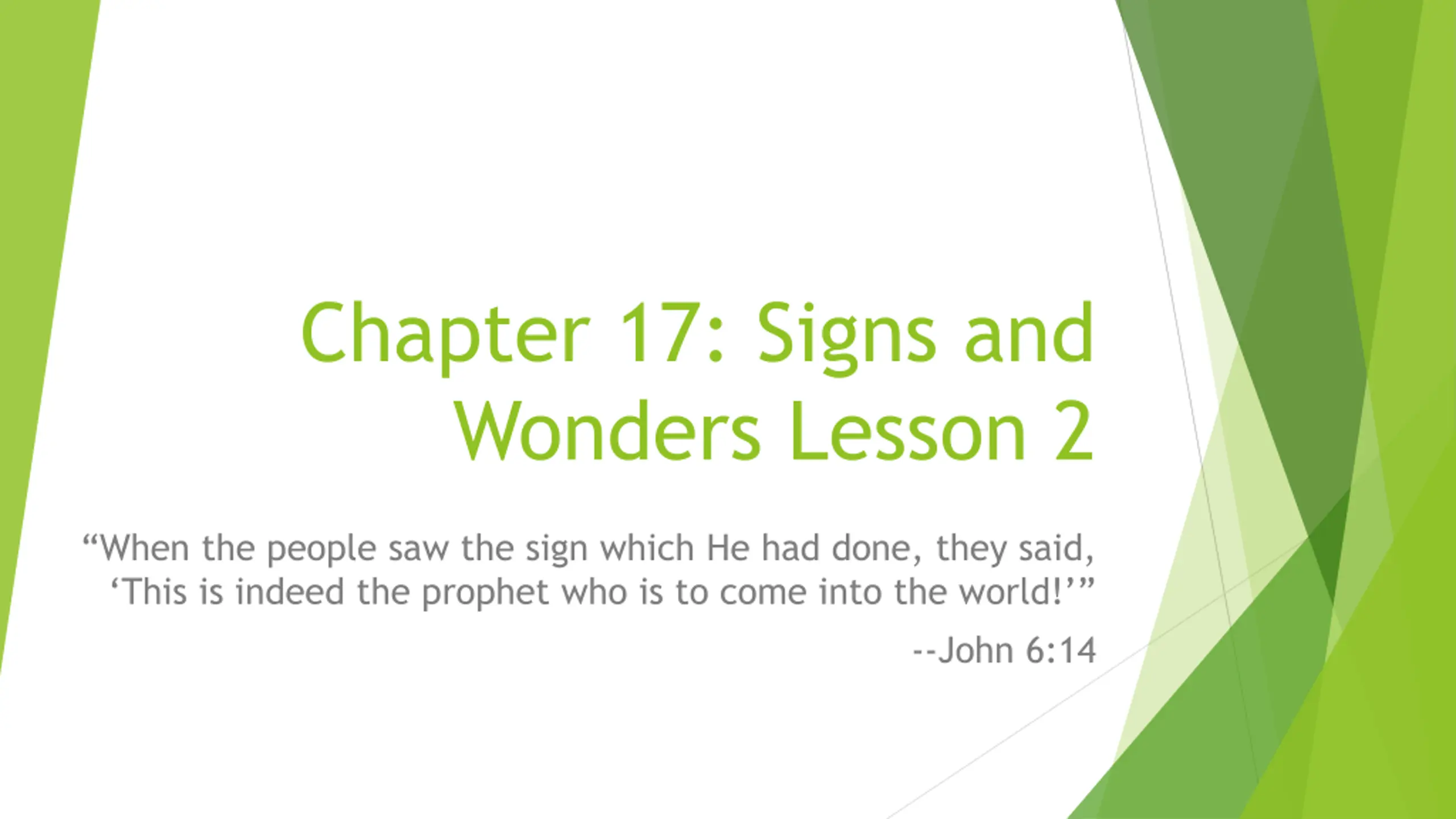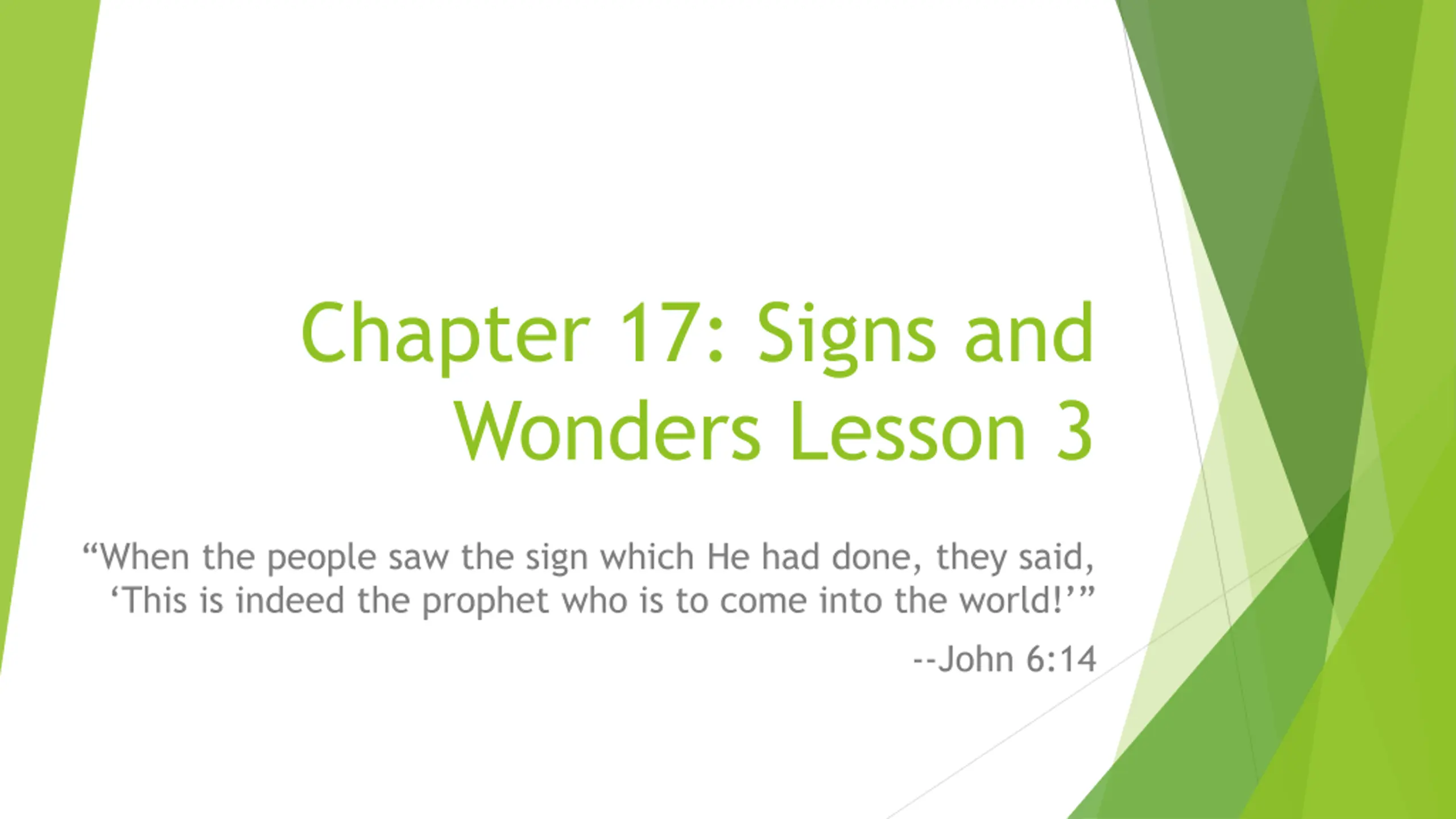 Chapter 17: Signs and Wonders Lesson 2 When the people saw the sign which He had done, they said, This is indeed the prophet who is to come into the world! --John 6:14