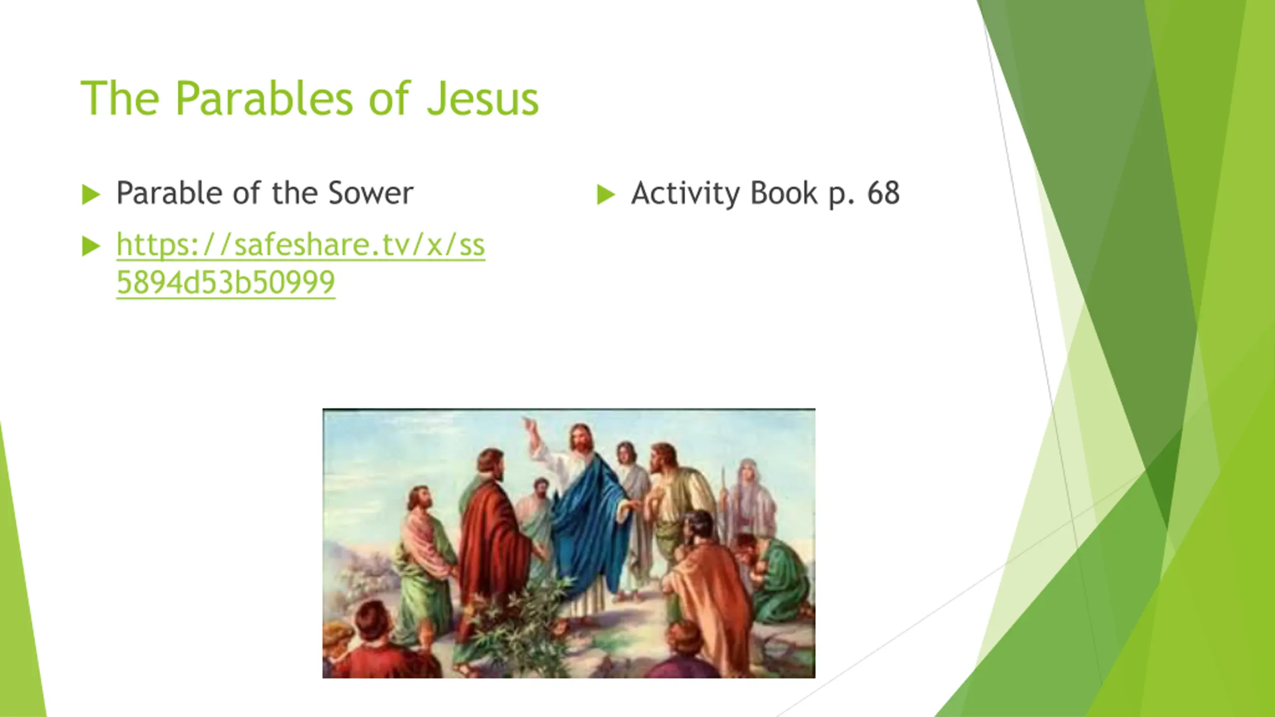 The Parables of Jesus Parable of the Sower Activity Book p. 68 https://safeshare.tv/x/ss 5894d53b50999