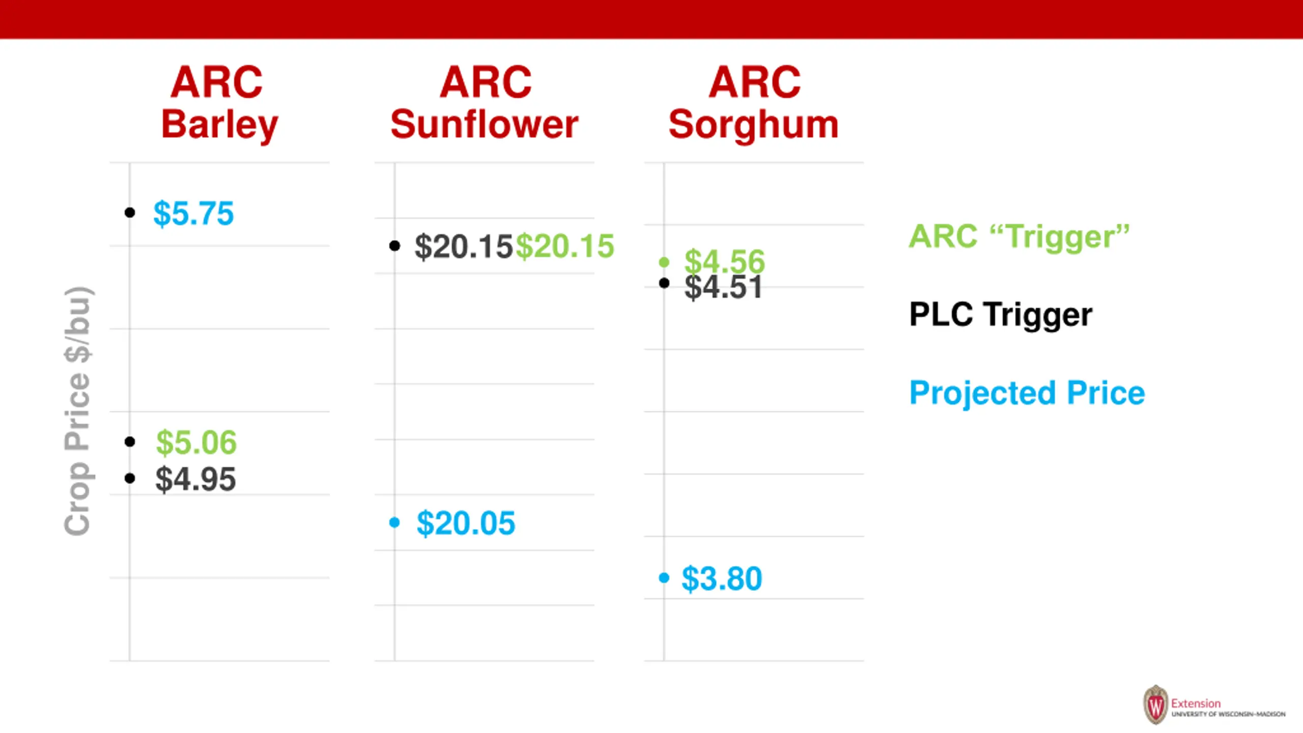 ARC Barley ARC Sunflower ARC Sorghum $5.75 ARC Trigger $20.15 $20.15 $4.56 $4.51 Crop Price $/bu) PLC Trigger Projected Price $5.06 $4.95 $20.05 $3.80