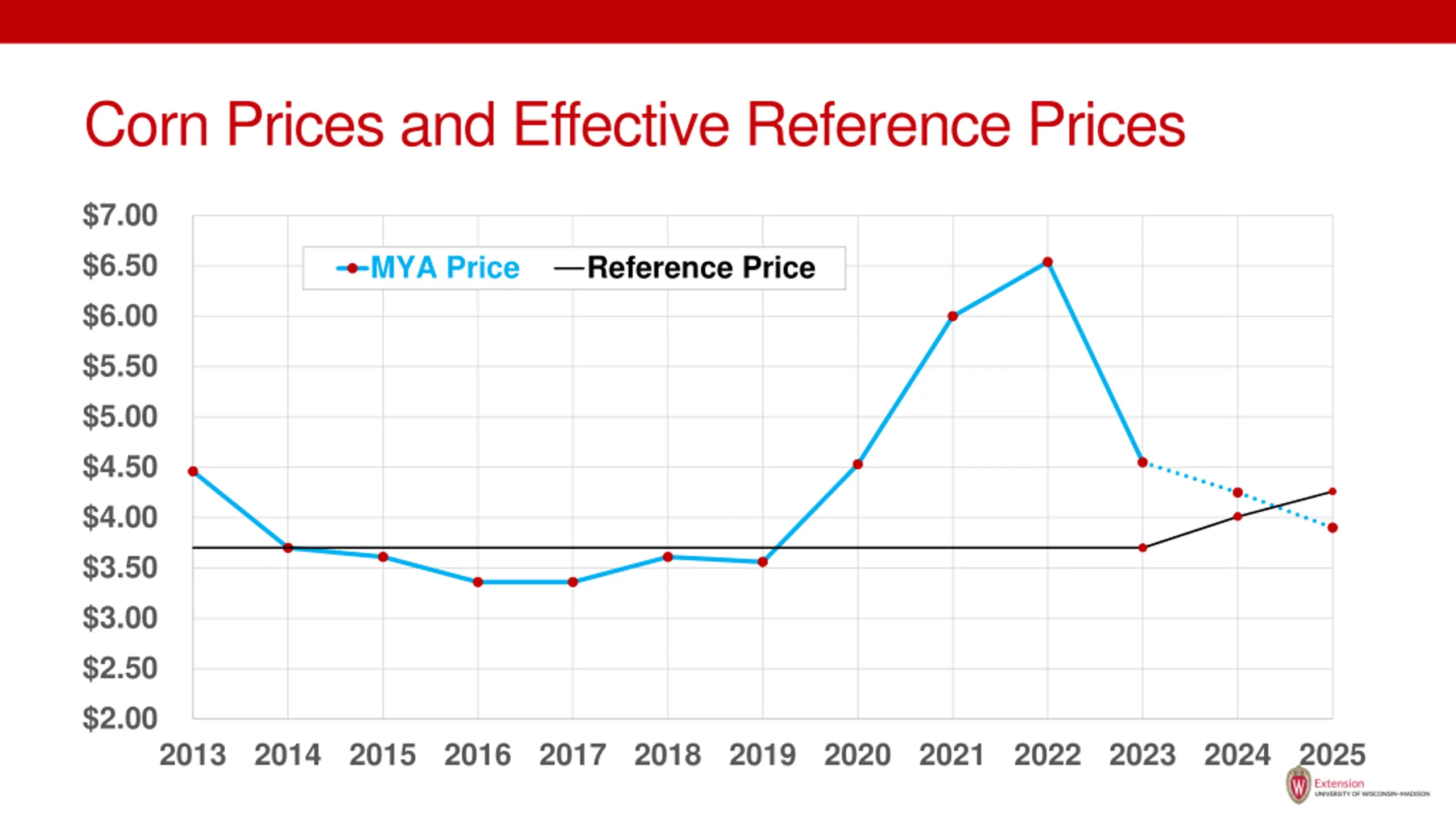 Corn Prices and Effective Reference Prices $7.00 $6.50 MYA Price Reference Price $6.00 $5.50 $5.00 $4.50 $4.00 $3.50 $3.00 $2.50 $2.00 2013 2014 2015 2016 2017 2018 2019 2020 2021 2022 2023 2024 2025