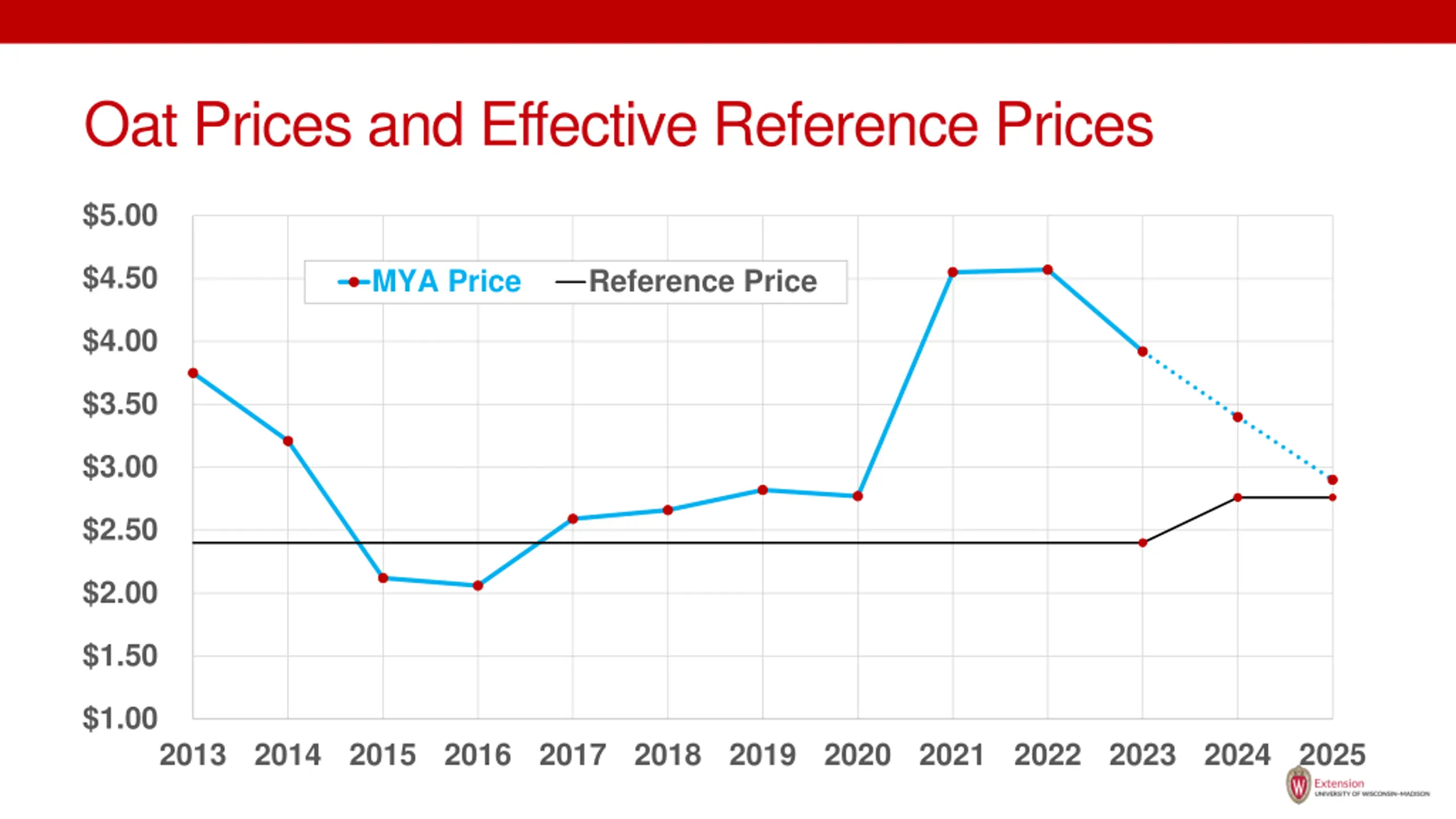 Oat Prices and Effective Reference Prices $5.00 $4.50 MYA Price Reference Price $4.00 $3.50 $3.00 $2.50 $2.00 $1.50 $1.00 2013 2014 2015 2016 2017 2018 2019 2020 2021 2022 2023 2024 2025