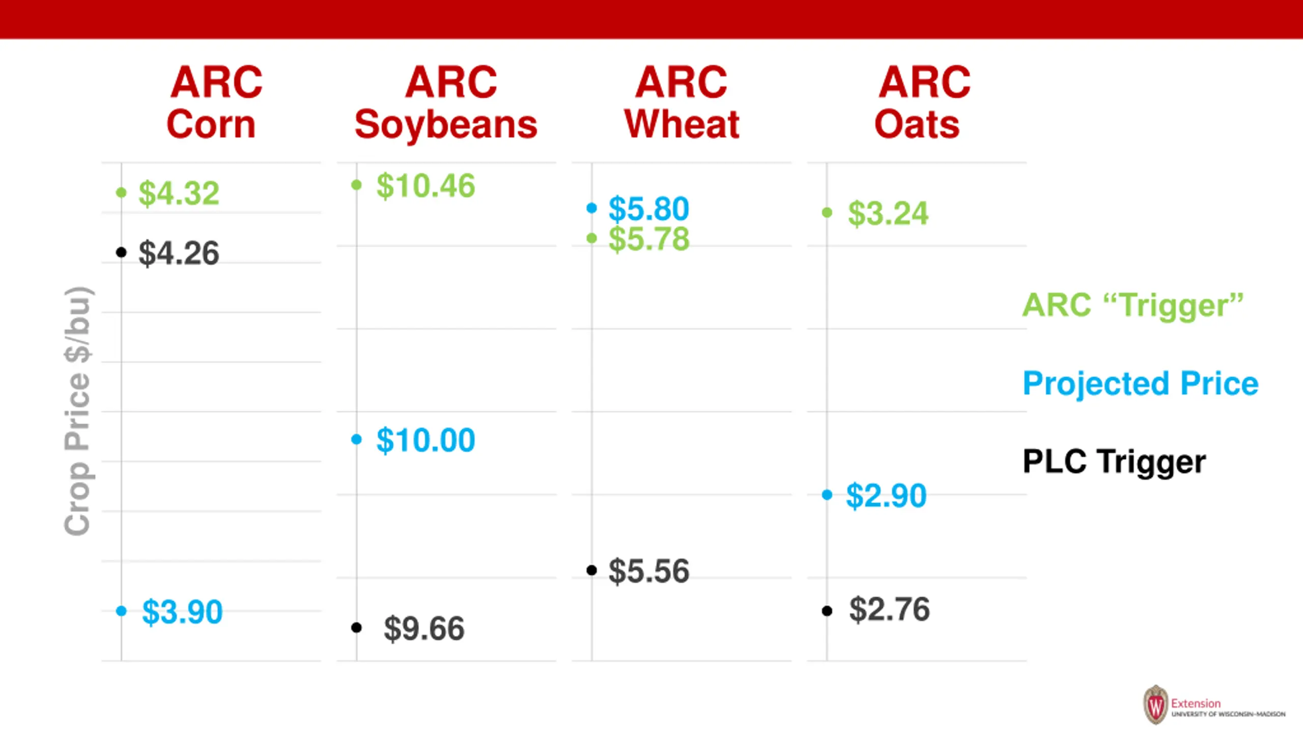 ARC ARC ARC ARC Corn Soybeans Wheat Oats $10.46 $4.32 $5.80 $5.78 $3.24 $4.26 Crop Price $/bu) ARC Trigger Projected Price $10.00 PLC Trigger $2.90 $5.56 $2.76 $3.90 $9.66