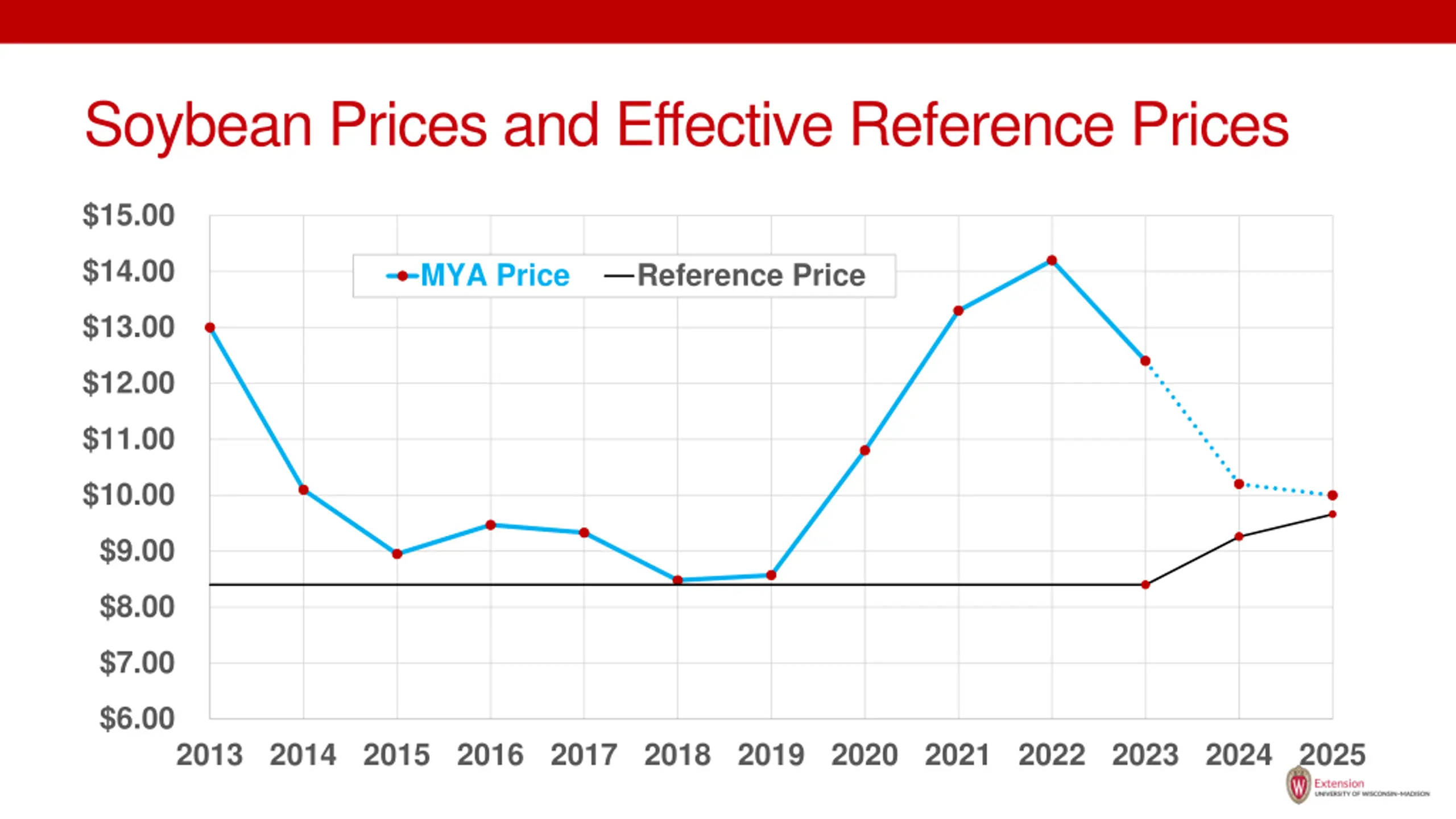 Soybean Prices and Effective Reference Prices $15.00 $14.00 MYA Price Reference Price $13.00 $12.00 $11.00 $10.00 $9.00 $8.00 $7.00 $6.00 2013 2014 2015 2016 2017 2018 2019 2020 2021 2022 2023 2024 2025