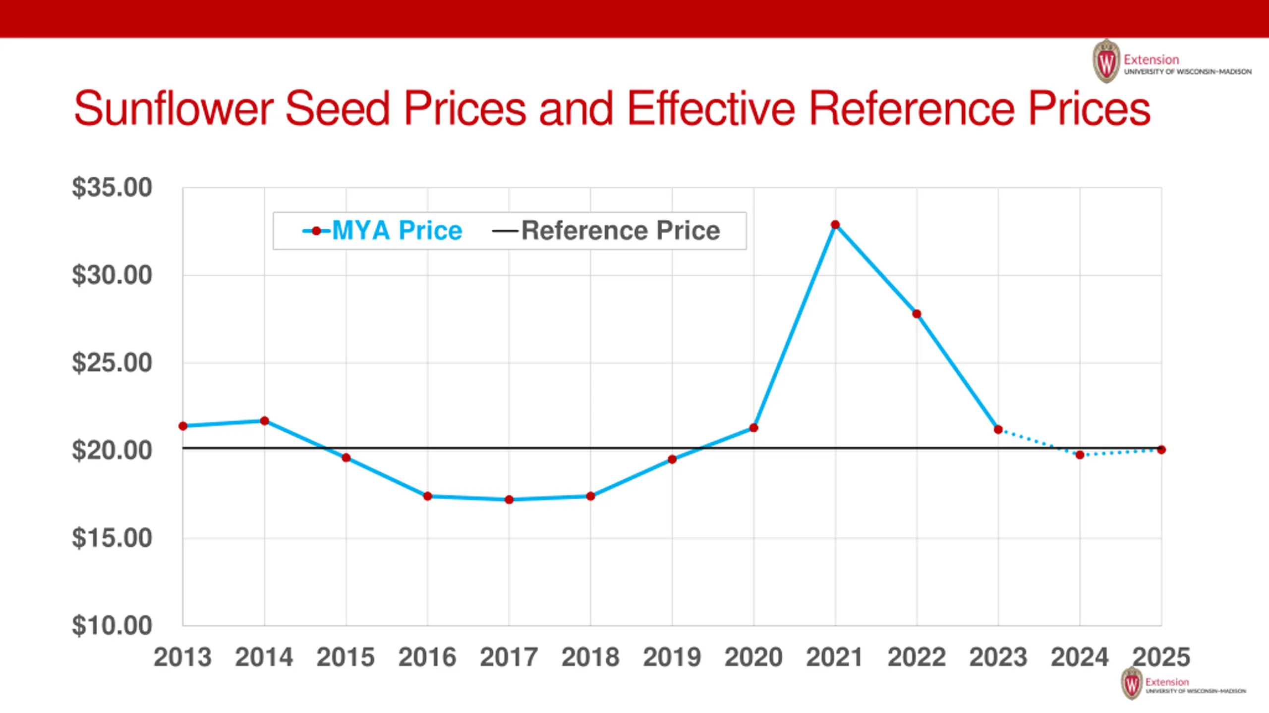 Sunflower Seed Prices and Effective Reference Prices $35.00 MYA Price Reference Price $30.00 $25.00 $20.00 $15.00 $10.00 2013 2014 2015 2016 2017 2018 2019 2020 2021 2022 2023 2024 2025