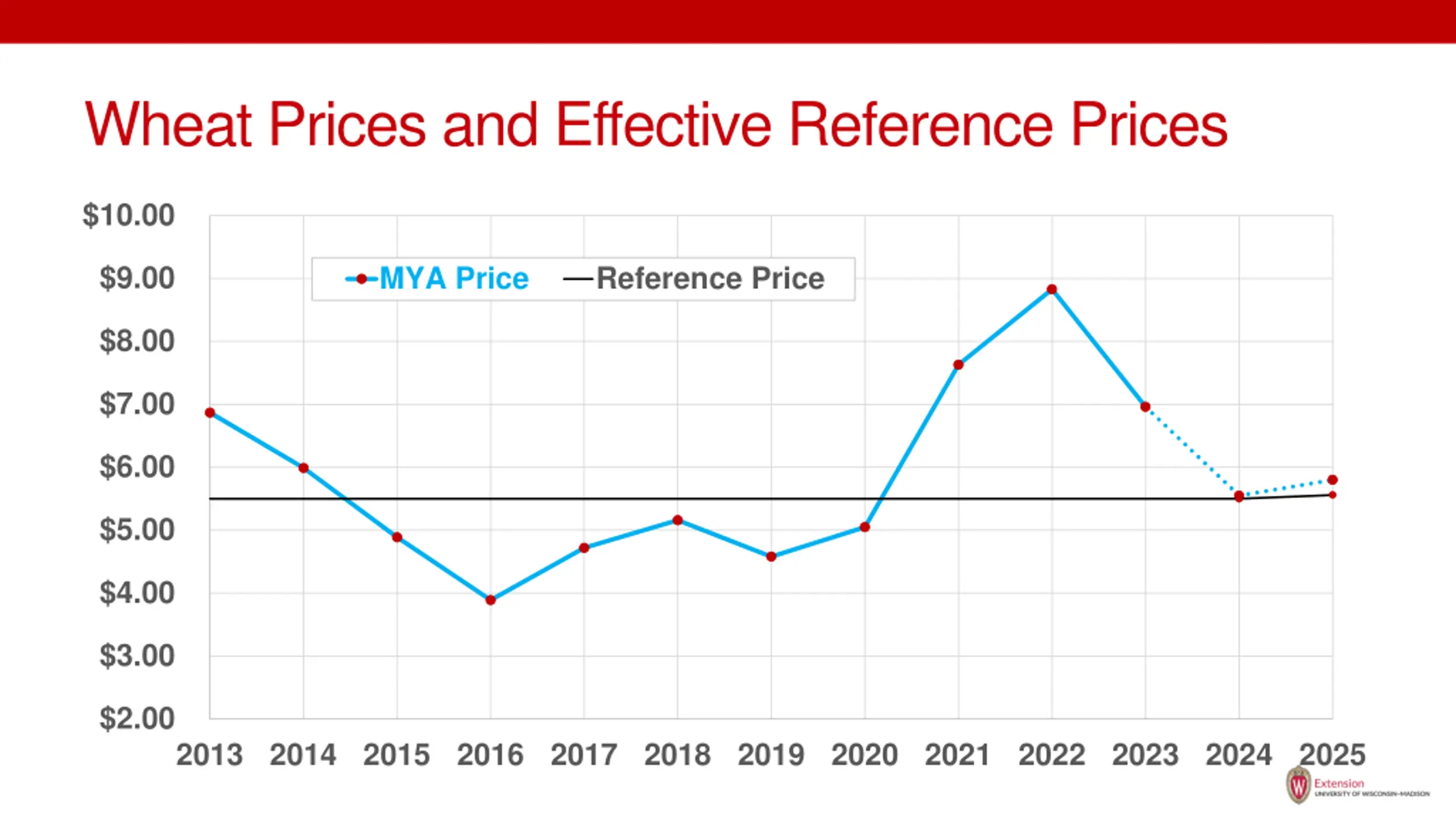 Wheat Prices and Effective Reference Prices $10.00 $9.00 MYA Price Reference Price $8.00 $7.00 $6.00 $5.00 $4.00 $3.00 $2.00 2013 2014 2015 2016 2017 2018 2019 2020 2021 2022 2023 2024 2025