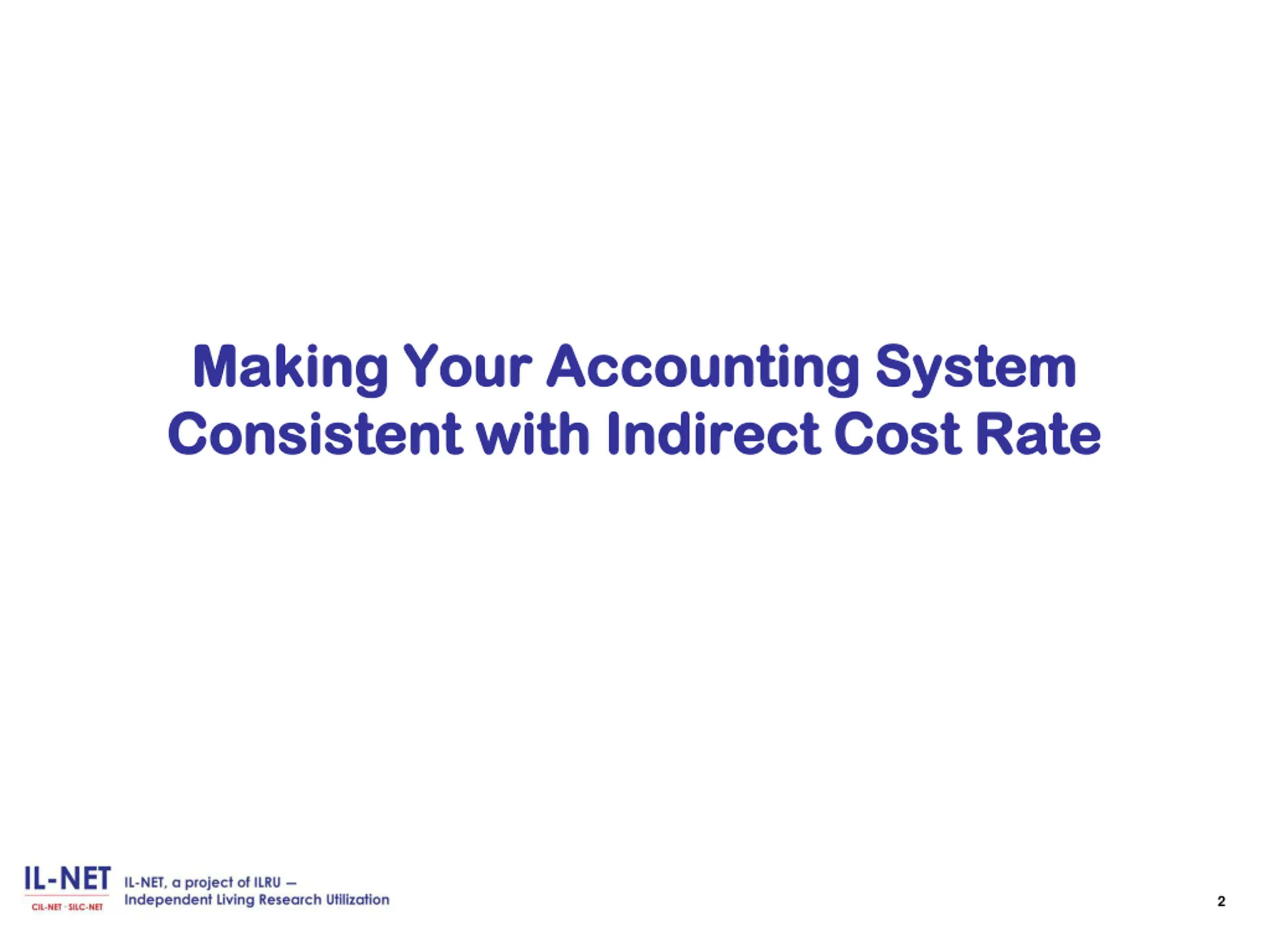 Making Your Accounting System Making Your Accounting System Consistent with Indirect Cost Rate Consistent with Indirect Cost Rate 2