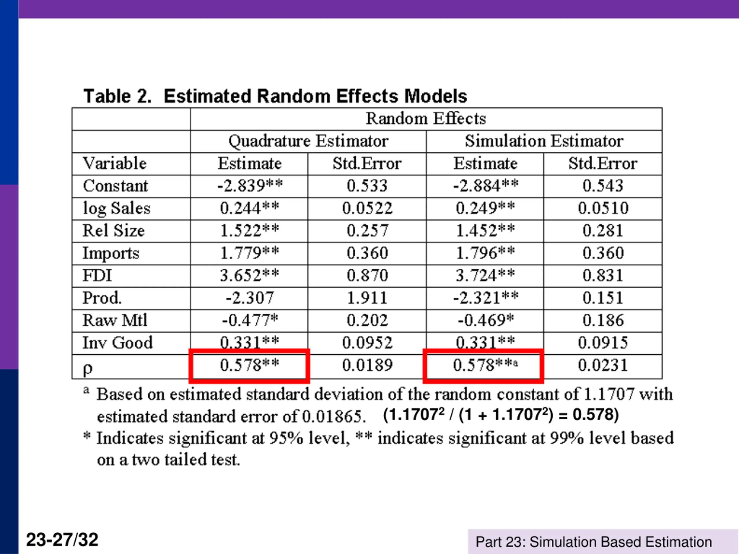 Obtaining the Unconditional Likelihood The Butler and Moffitt (1982) method is used by most current software Quadrature (Stata GLAMM) Works only for normally distributed heterogeneity 23-7/32 Part 23: Simulation Based Estimation