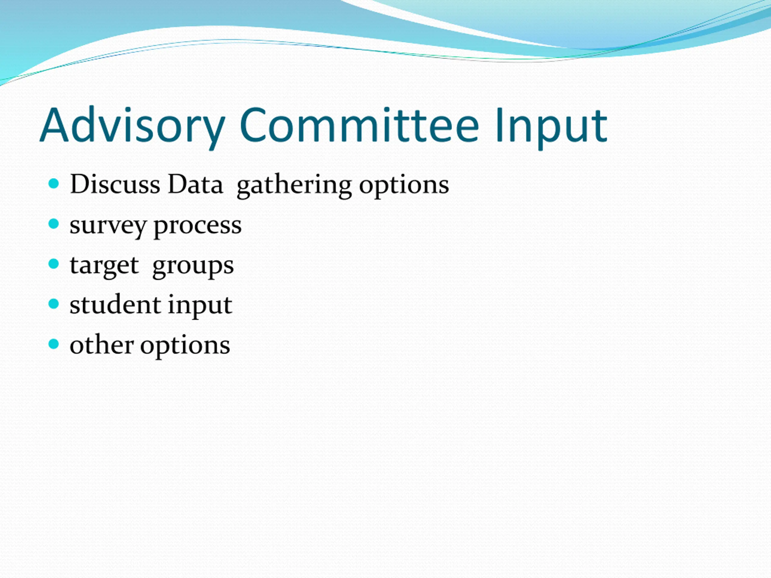 Advisory Committee Input Discuss Data gathering options survey process target groups student input other options