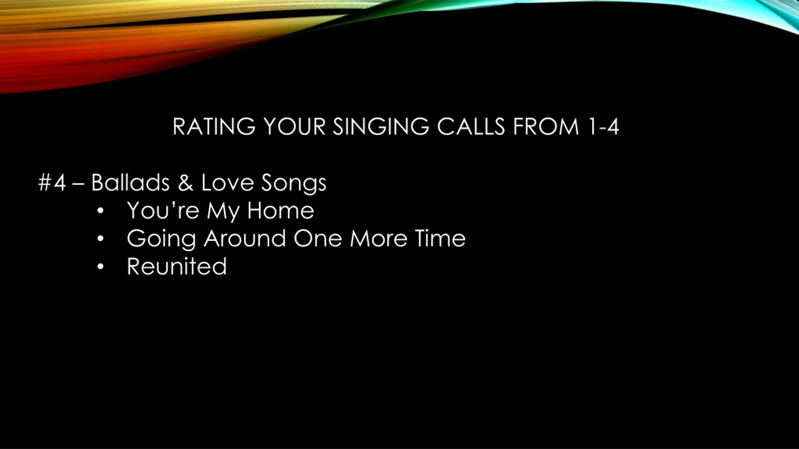 RATING YOUR SINGING CALLS FROM 1-4 #4 Ballads & Love Songs You re My Home Going Around One More Time Reunited