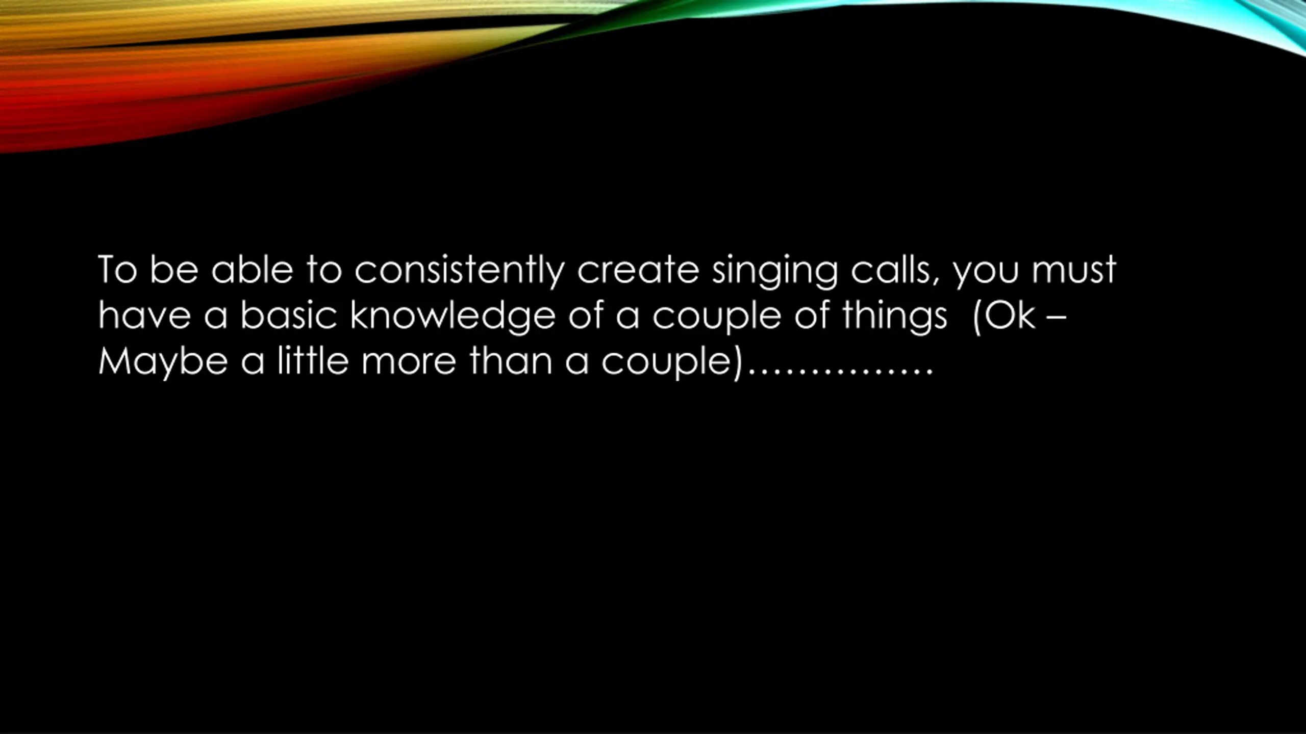 To be able to consistently create singing calls, you must have a basic knowledge of a couple of things (Ok Maybe a little more than a couple)