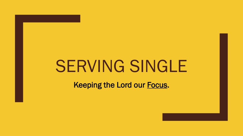 SERVING SINGLE Keeping the Lord our Keeping the Lord our Focus Focus. .