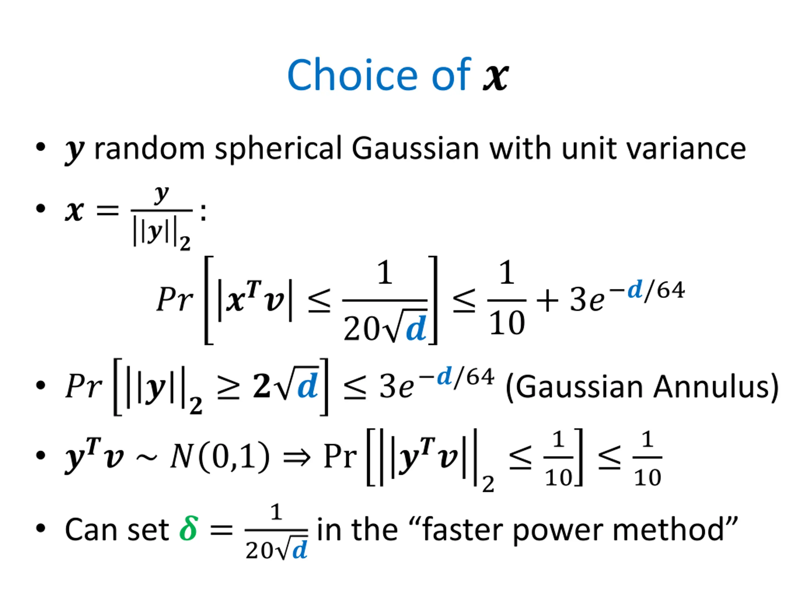 Choice of ? ? random spherical Gaussian with unit variance ? ? 1 ? = ?: 1 ?? ??? 10+ 3? ?/64 20 ? ? ? ? 3? ?/64(Gaussian Annulus) ??? ? 0,1 Pr ??? ?? ? 1 10 1 10 2 1 Can set ? = 20 ?in the faster power method