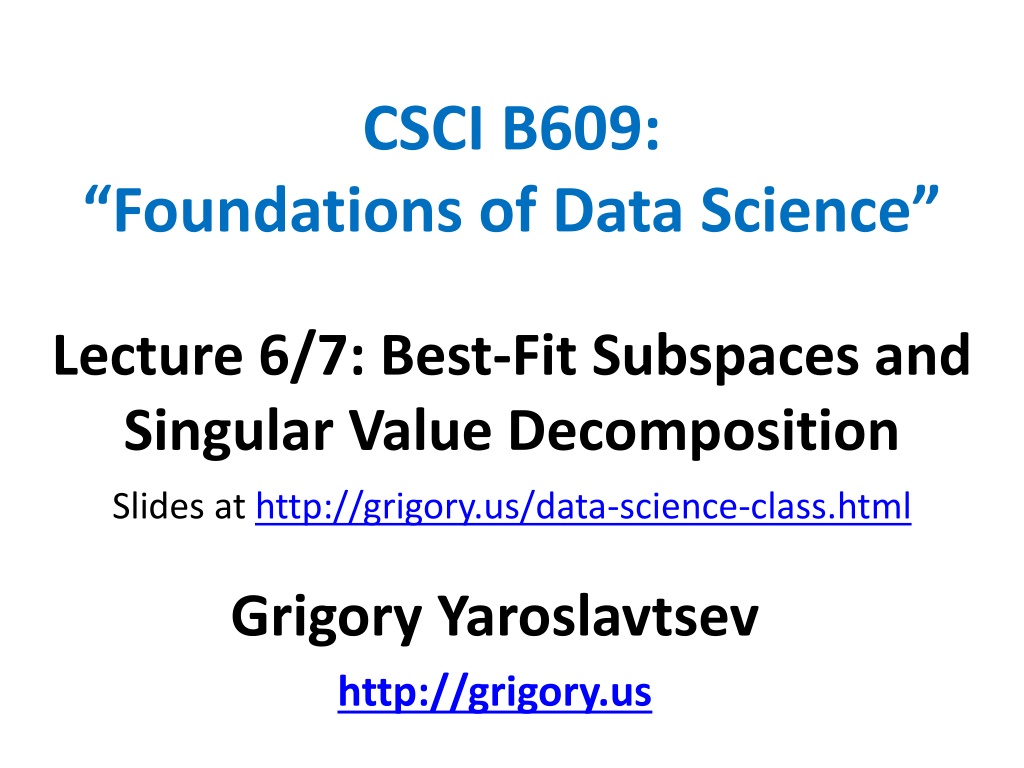 CSCI B609: Foundations of Data Science Lecture 6/7: Best-Fit Subspaces and Singular Value Decomposition Slides at http://grigory.us/data-science-class.html Grigory Yaroslavtsev http://grigory.us