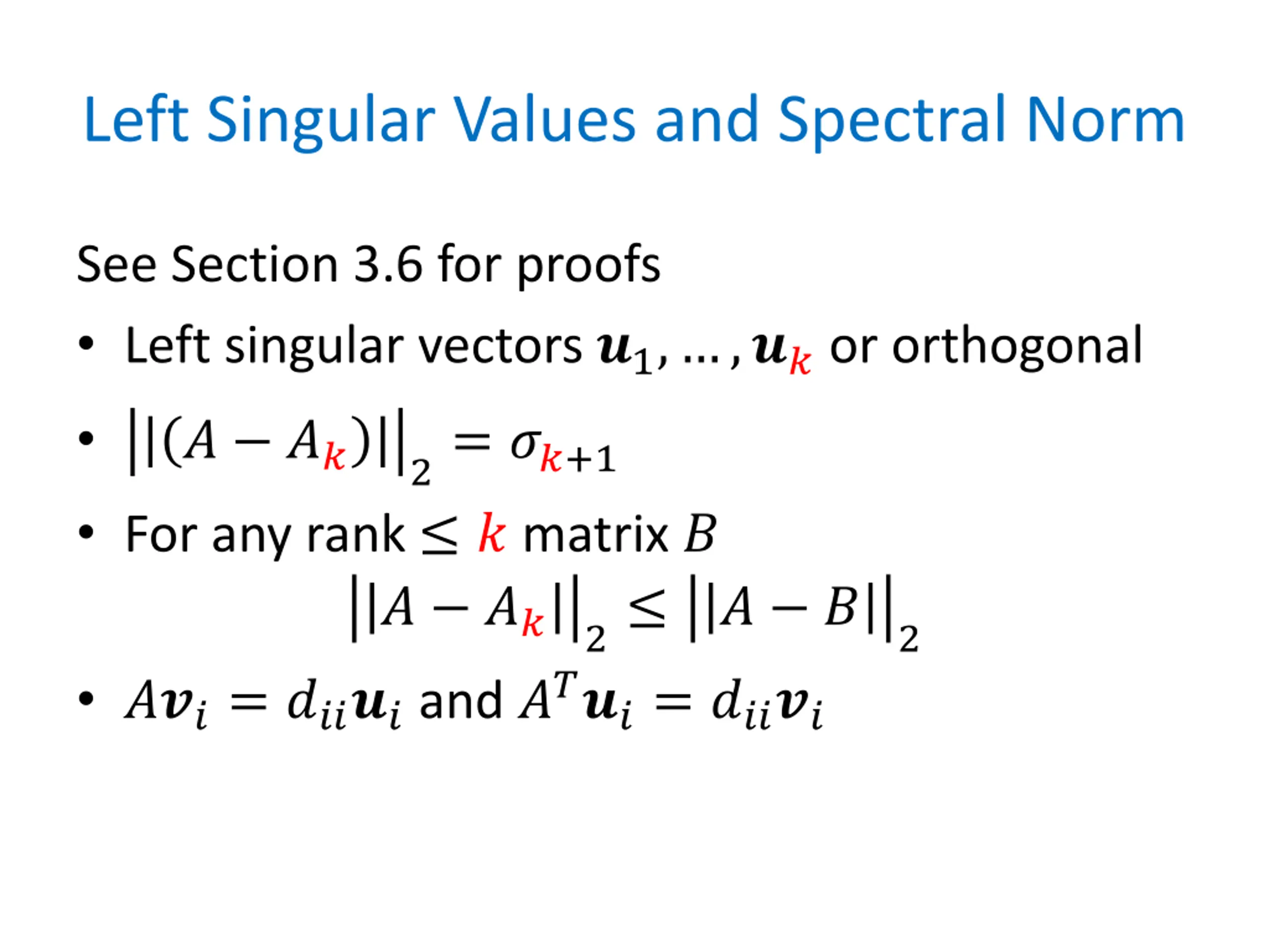 Left Singular Values and Spectral Norm See Section 3.6 for proofs Left singular vectors ?1, ,?? or orthogonal ? ?? For any rank ? matrix ? ? ?? ???= ????? and ????= ????? 2= ??+1 2 ? ? 2