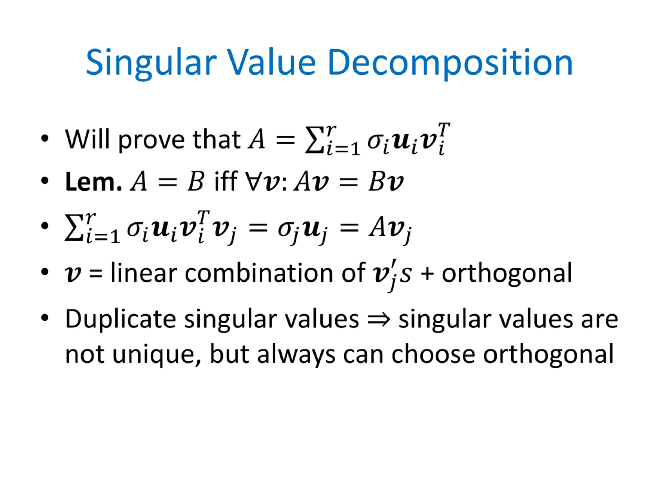 Singular Value Decomposition ? ? Will prove that ? = ?=1 Lem. ? = ? iff ?:?? = ?? ?=1 ?????? ? = linear combination of ?? Duplicate singular values singular values are not unique, but always can choose orthogonal ?????? ? ???= ????= ??? ? + orthogonal