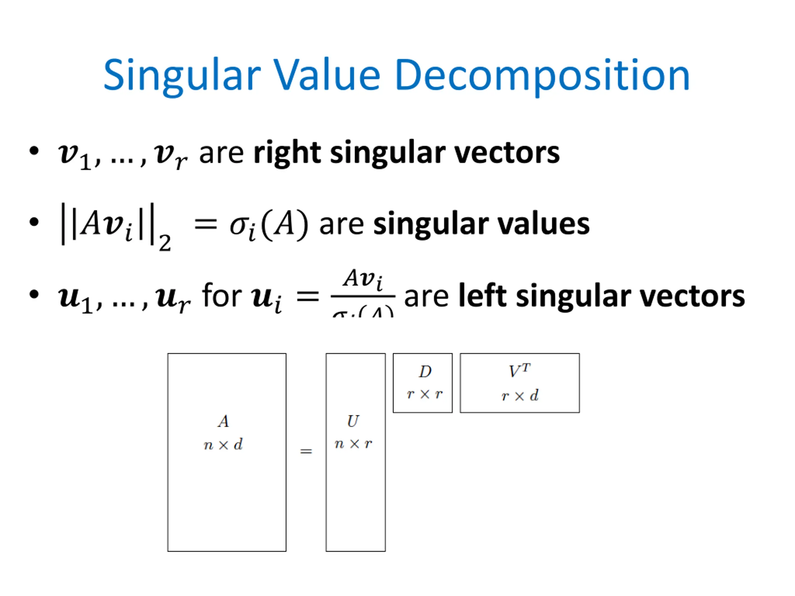 Singular Value Decomposition ?1, ,?? are right singular vectors 2= ??(?) are singular values ?1, ,??for ??= ??? ??? ??? are left singular vectors