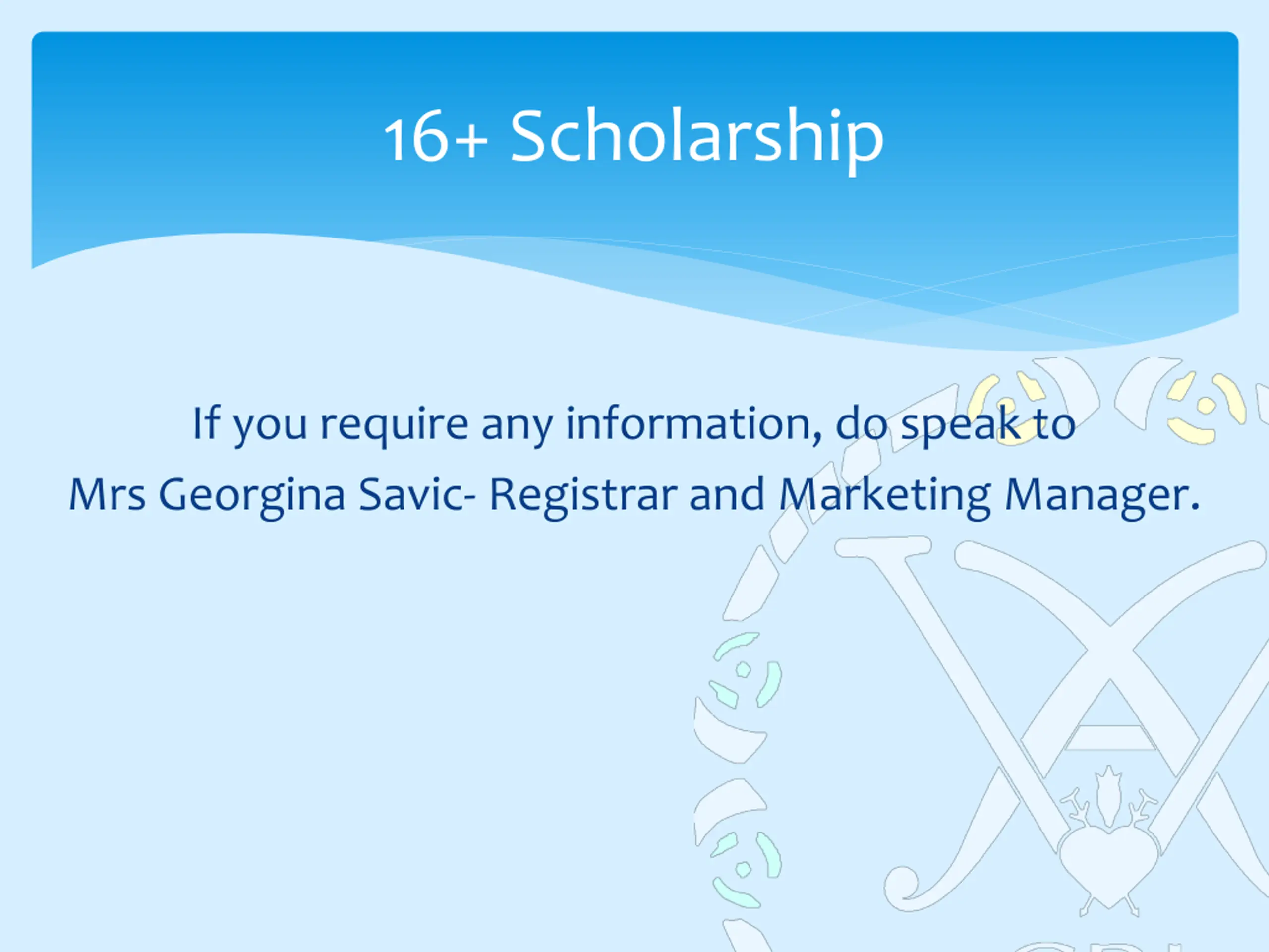 16+ Scholarship If you require any information, do speak to Mrs Georgina Savic- Registrar and Marketing Manager.