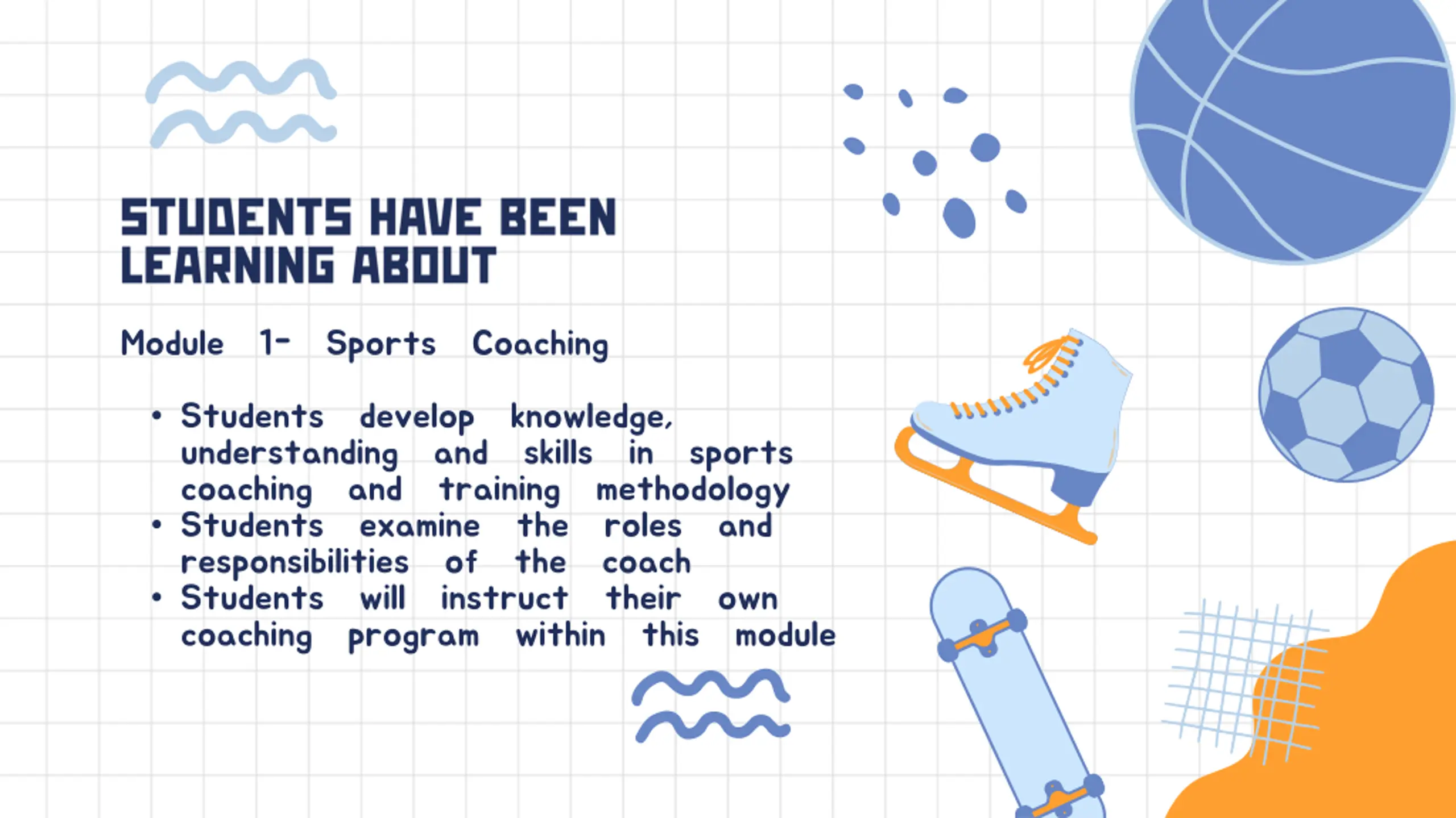 Module1-SportsCoaching Studentsdevelopknowledge, understandingandskillsinsports coachingandtrainingmethodology Studentsexaminetherolesand responsibilitiesofthecoach Studentswillinstructtheirown coachingprogramwithinthismodule