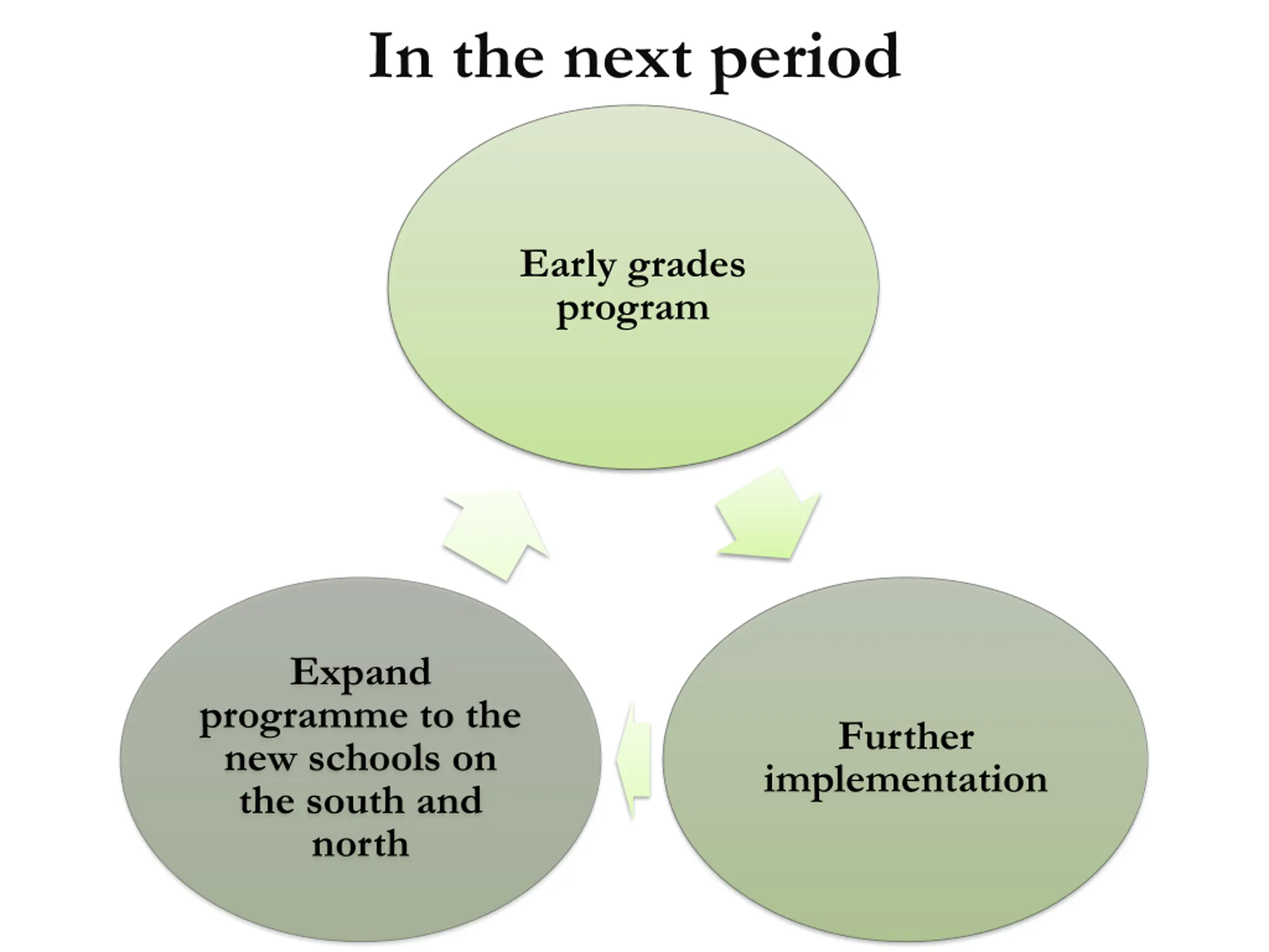 In the next period Early grades program Expand programme to the new schools on the south and north Further implementation